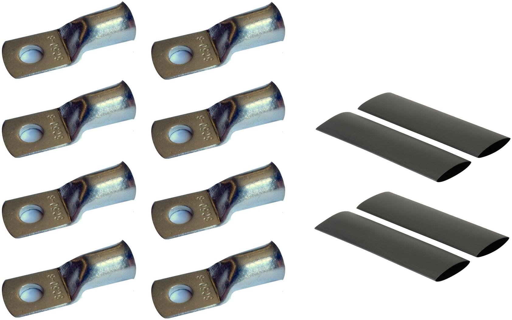 Cable lugs are pure copper with a corrosion resistant tin coating. Heat shrink is black with and certified for up to 105 C and 600V.