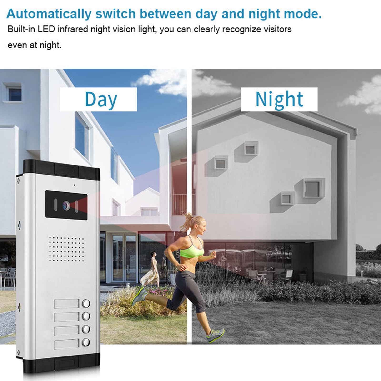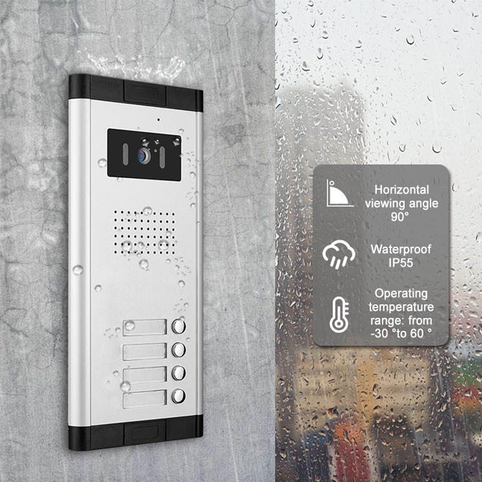 IP55 WATERPROOF:The doorbell made of aluminum alloy material has rain outside the doorbell. It can easily resist rain, snow and bad weather. The installation package is equipped with a 5m cable for easy connection between doorbell and monitor. It can be used by connecting the power supply.