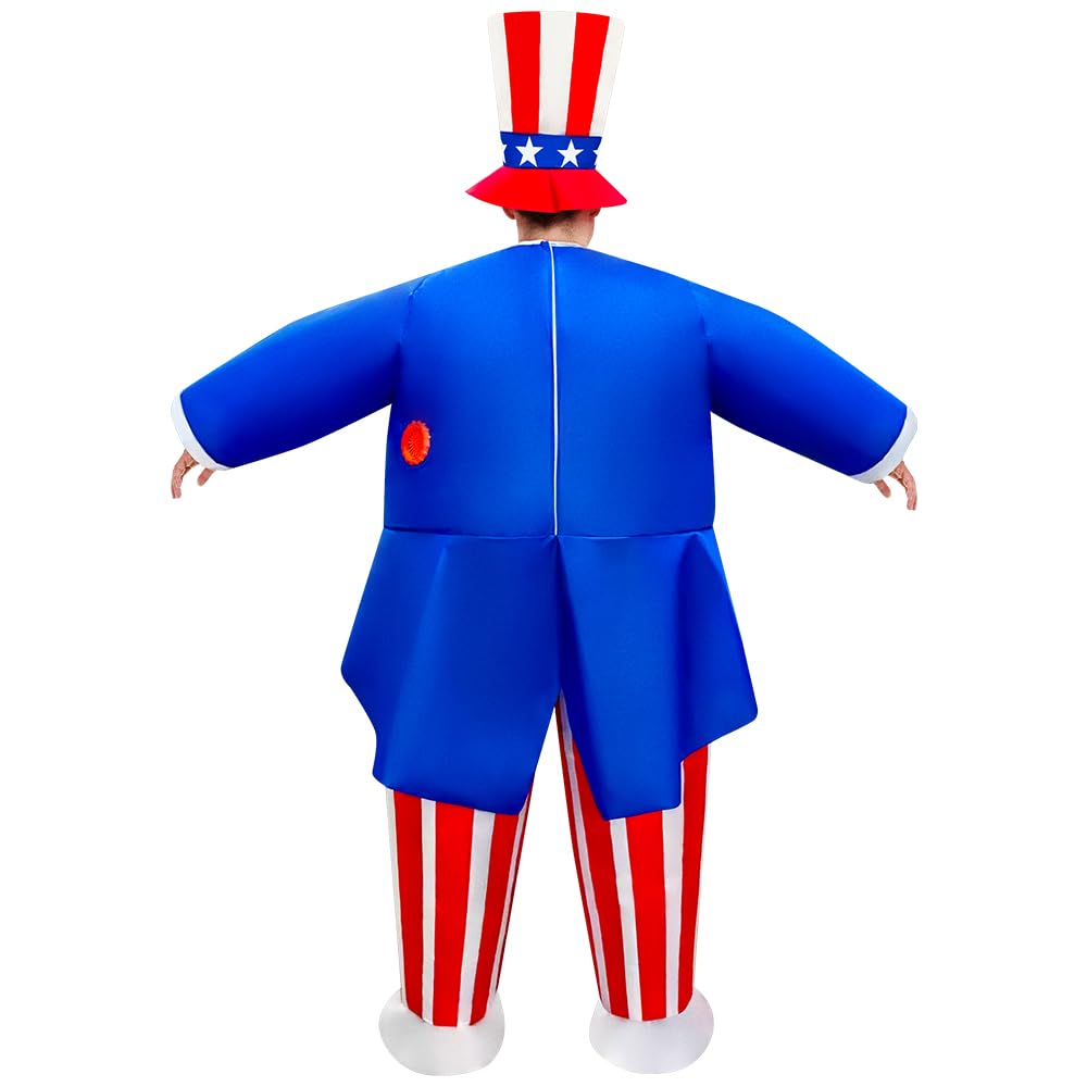 ADULT JULY 4TH COSTUME MEN SIZE: USA 4th of July party uncle sam blow up costumes adults is large and plus size design suitable for the people between 4.9ft (1.5M) to 6.2ft (1.9M).Patriotic inflatable costume adult can fit for almost people,such as easter mascot costume adult uncle sam costume for adult,men,women