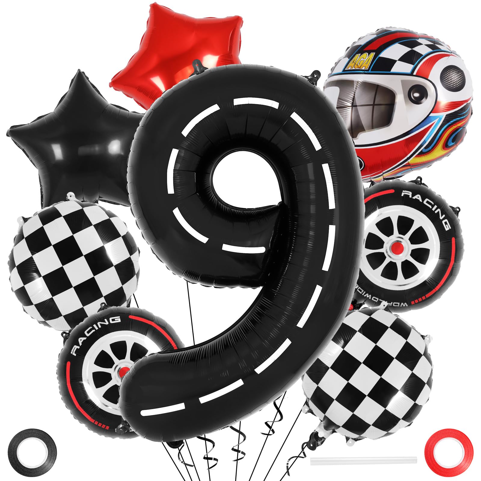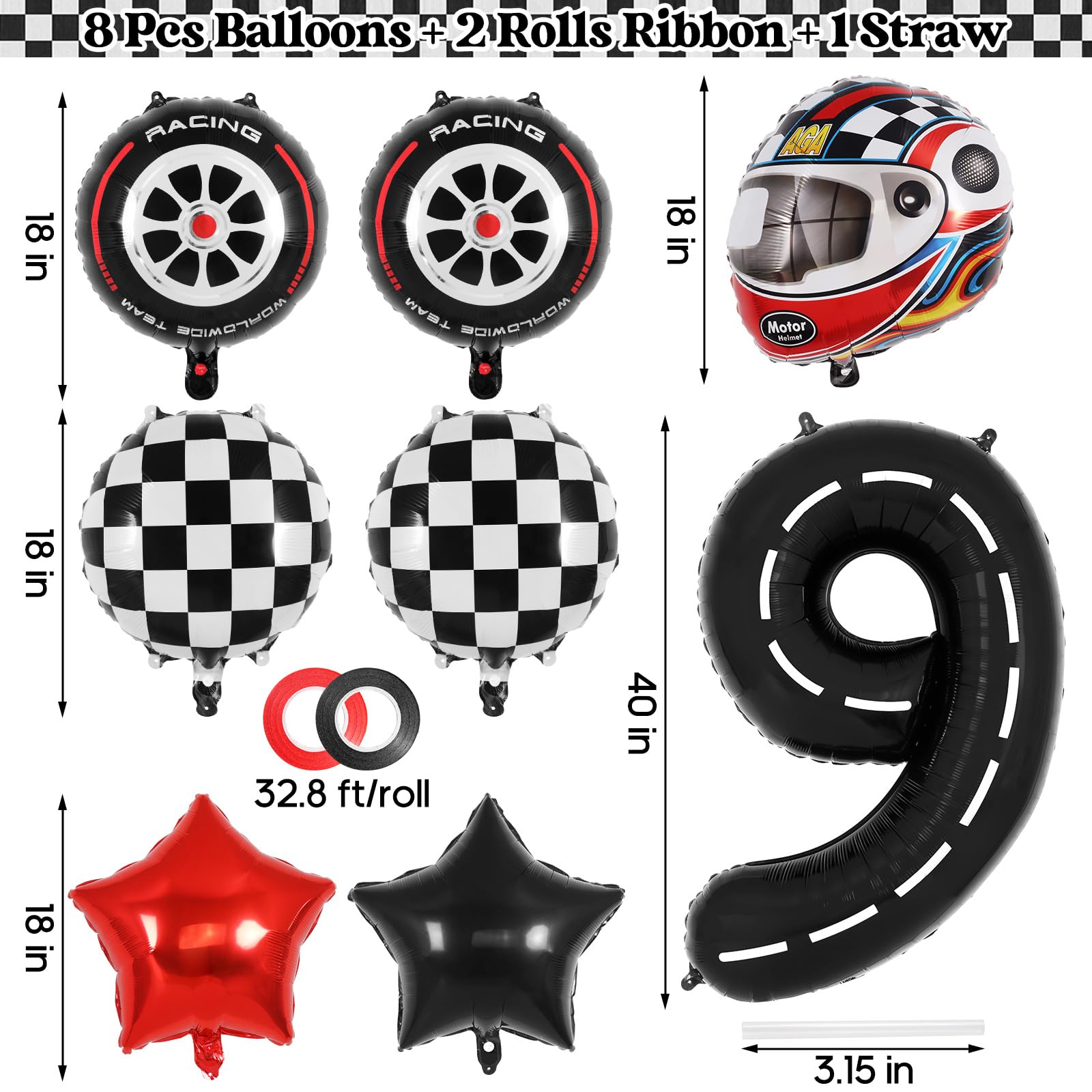 PACKAGE CONTAINS: You will get 1 number balloon, 1 helmet balloon, 2 checkered balloon, 2 tire balloon, 2 star balloon, 2 rolls ribbon and 1 straw. What an abundance of balloons for your race car themed birthday party.