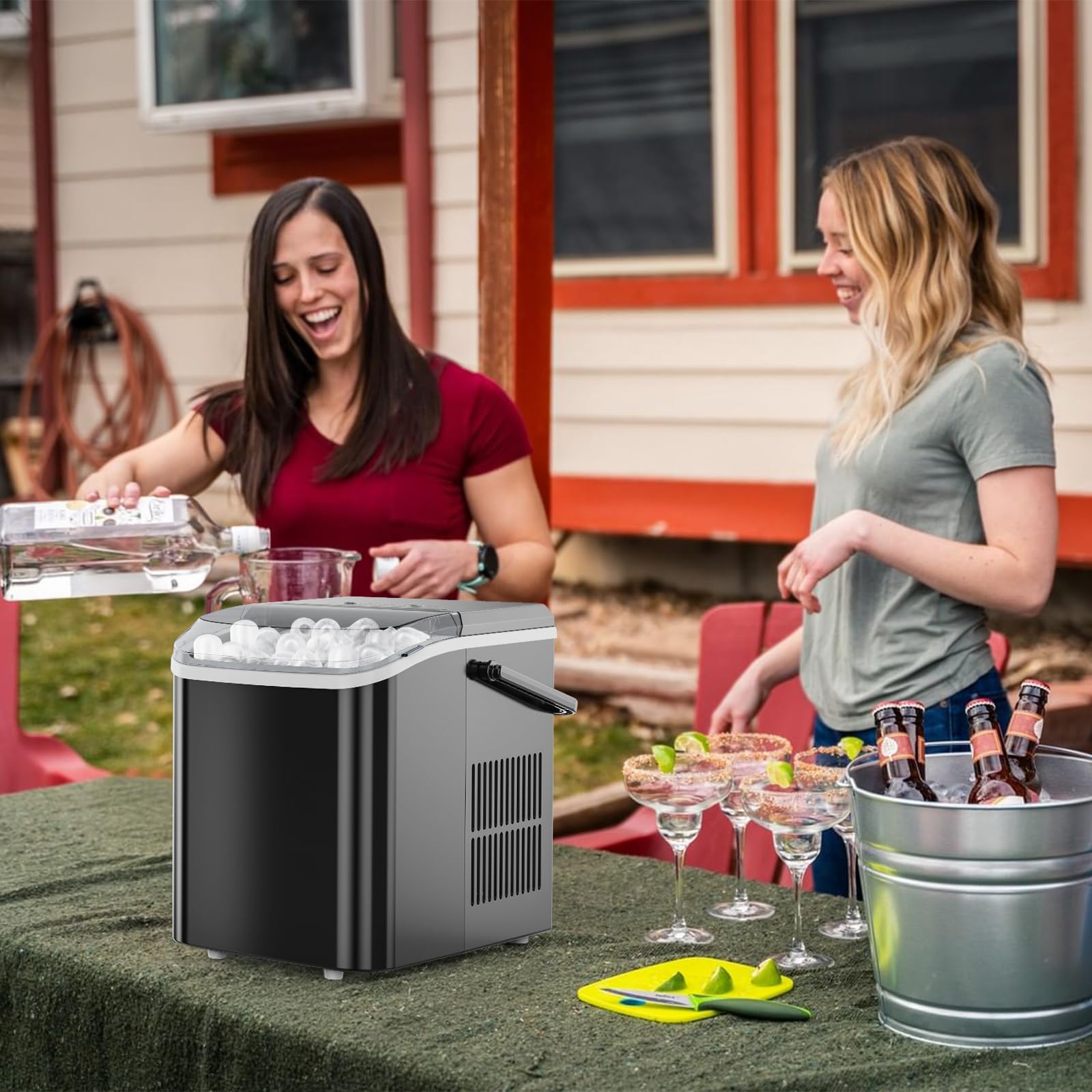 Versatile with Two Ice Sizes & Easy-Fill Tank: Enjoy customizable ice with two size options to suit any drink. The portable ice machine features a 1.5L easy-fill water tank and compact design, making it a flexible portable ice maker perfect for countertops, RVs, or small gatherings.