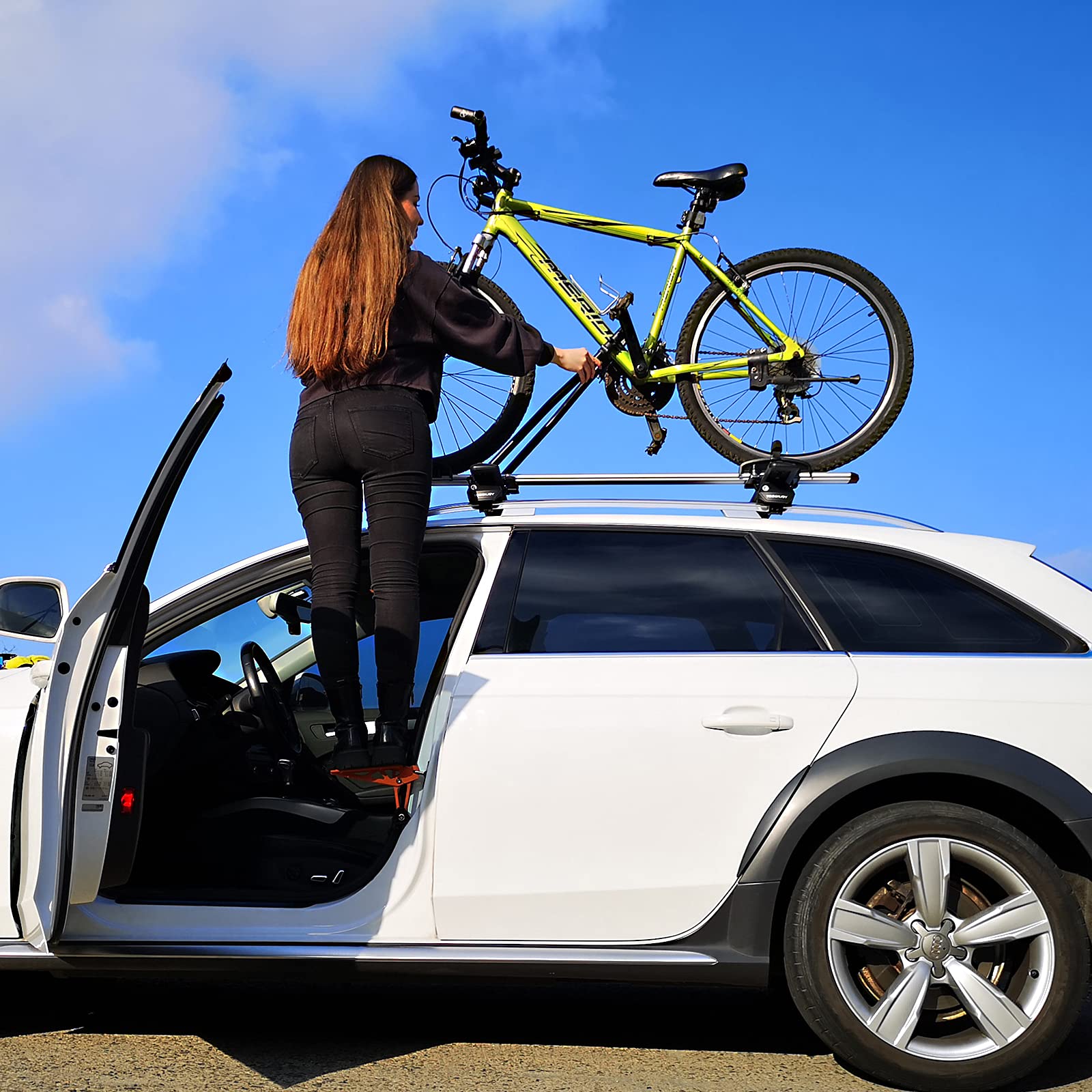 【FOLDABLE & PORTABLE】TOOENJOY doorstep is foldable and weighs only 1.9lbs. You can store it away in your glove box or spare tire compartment. It's ideal for loading and strapping your cargo box or bag, roof rack or basket, kayak, canoe, bicycle, ski carrier, snowboard, or other accessories, and even washing your vehicle roof!