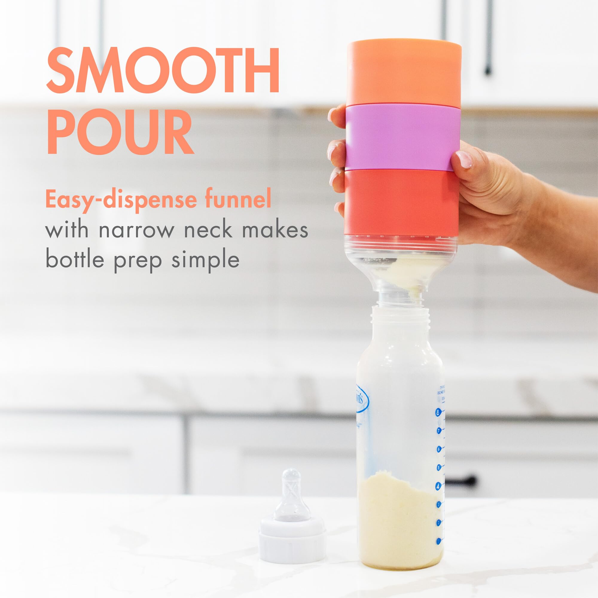 Smooth Pour: This set of travel formula dispenser pods includes an easy-dispense funnel with a narrow neck that keeps baby bottle prep hassle-free while you're out and about