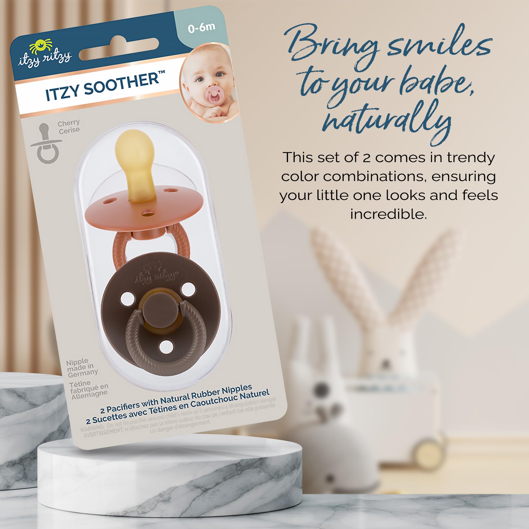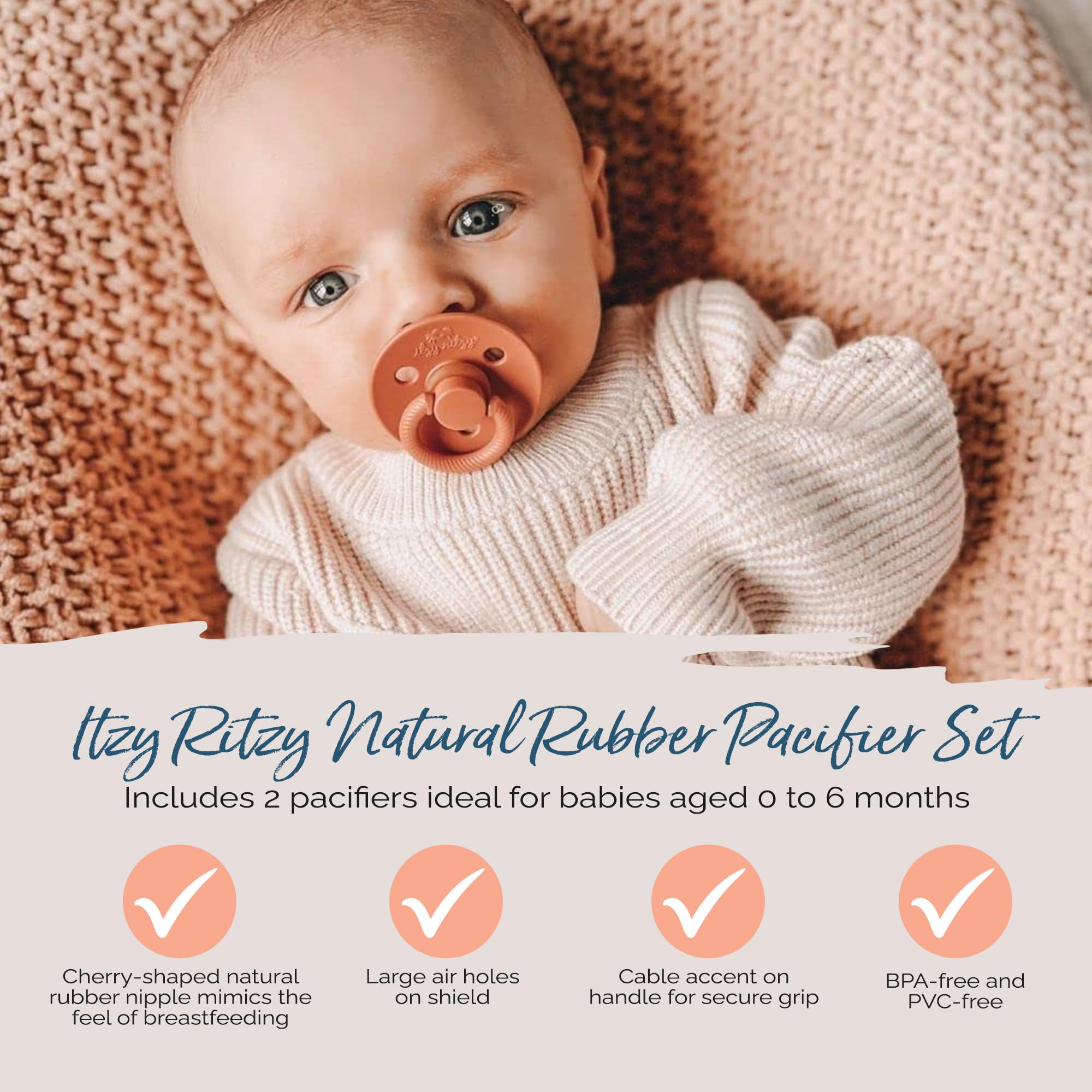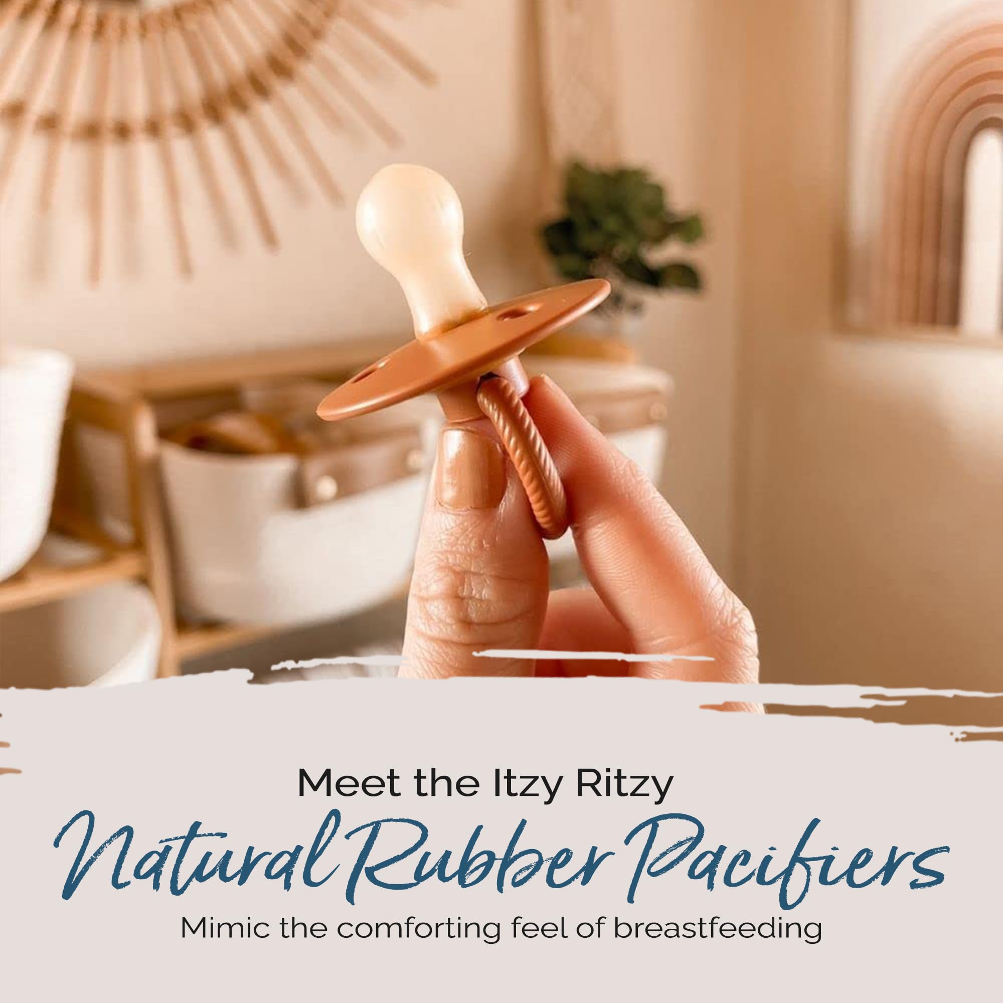 Are you searching for the perfect pacifier that combines safety, style, and comfort for your little one? Look no further than Itzy Ritzy Natural Rubber Pacifiers – a delightful blend of functionality and fashion. Picture this: a soothing pacifier designed for newborns aged 0-6 months, crafted with a natural rubber nipple that mimics the comforting feel of breastfeeding. What sets it apart? The benefits of natural rubber, offering not only a gentle touch but also a cherry-shaped nipple to mimic the feel of breastfeeding. Our natural rubber pacifiers feature a shield with large air holes and meet ASTM safety standards. And that's not all – the pacifier boasts a unique cable design detail on the plastic handle, adding a touch of chic style to the equation. Say goodbye to worries and hello to peace of mind, as these chic pacifiers are BPA-free and PVC-free, elevating your baby's essentials with a secure, stylish, and naturally soothing solution. Make each moment comforting and chic with Itzy Ritzy's Natural Rubber Pacifiers – where safety meets style in perfect harmony for your little one's early stages.