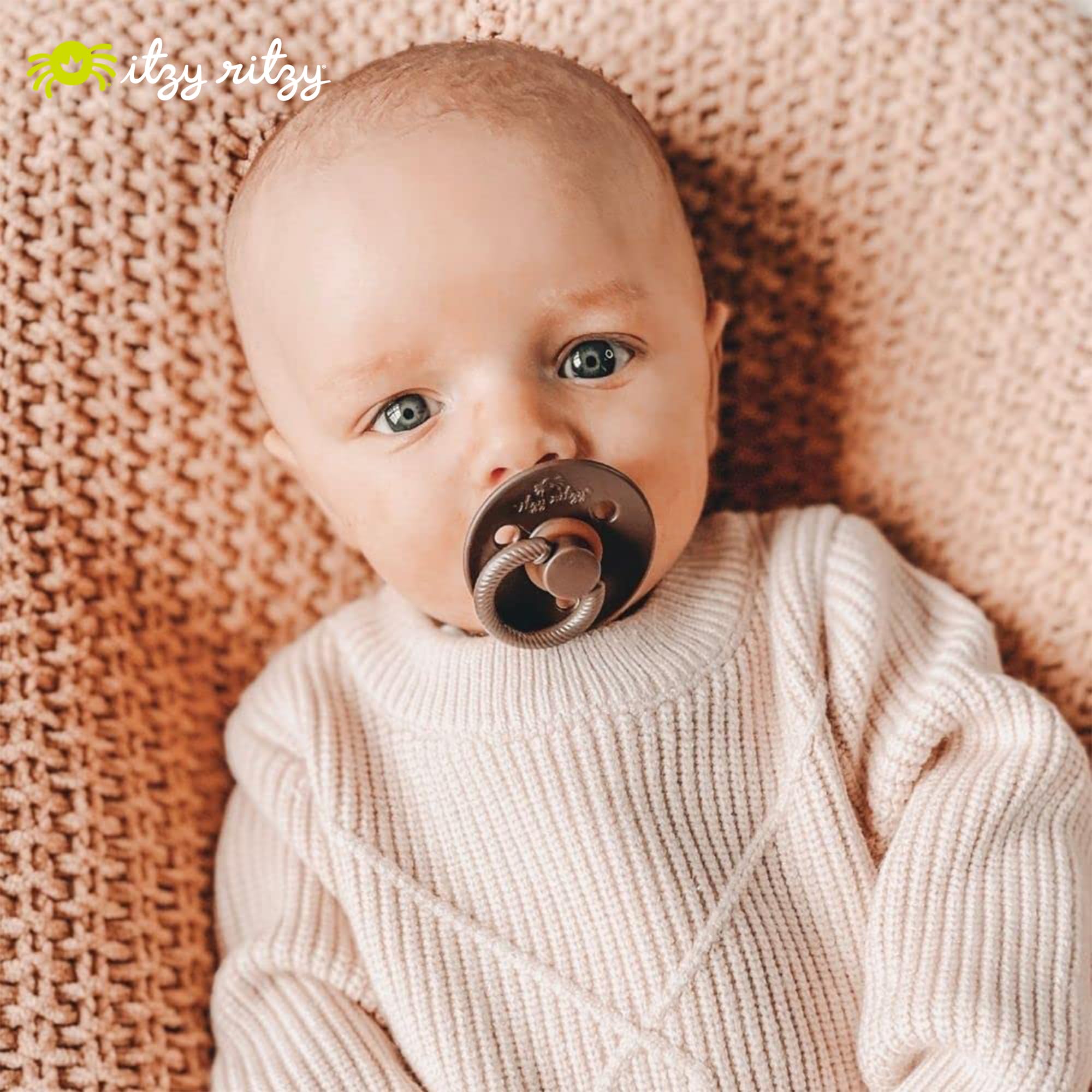ITZY RITZY NEWBORN ESSENTIALS: Discover our trusted baby essentials. These chic pacifiers for babies aged 0-6 months meet safety standards while adding a stylish flair to your baby's accessories. Secure and essential for your little one's early stages.