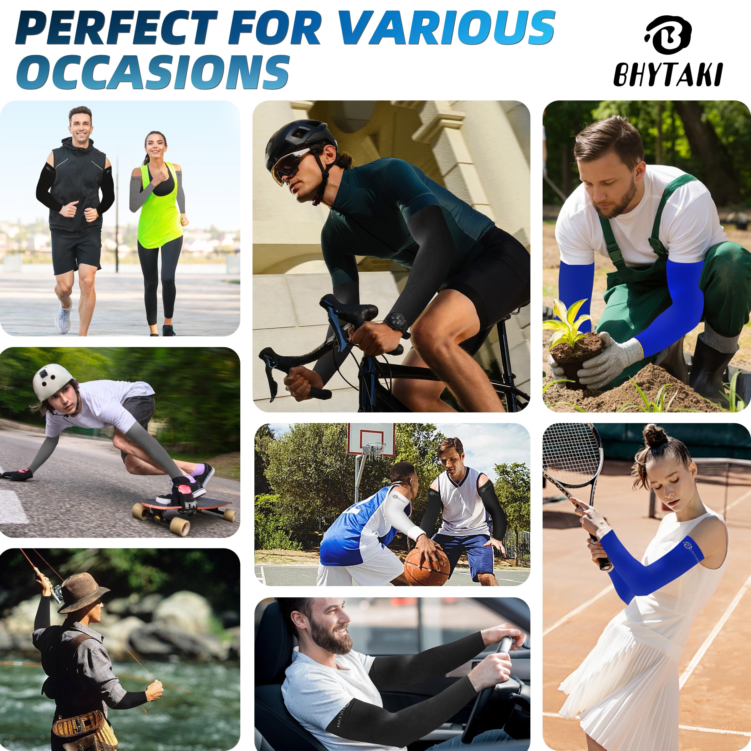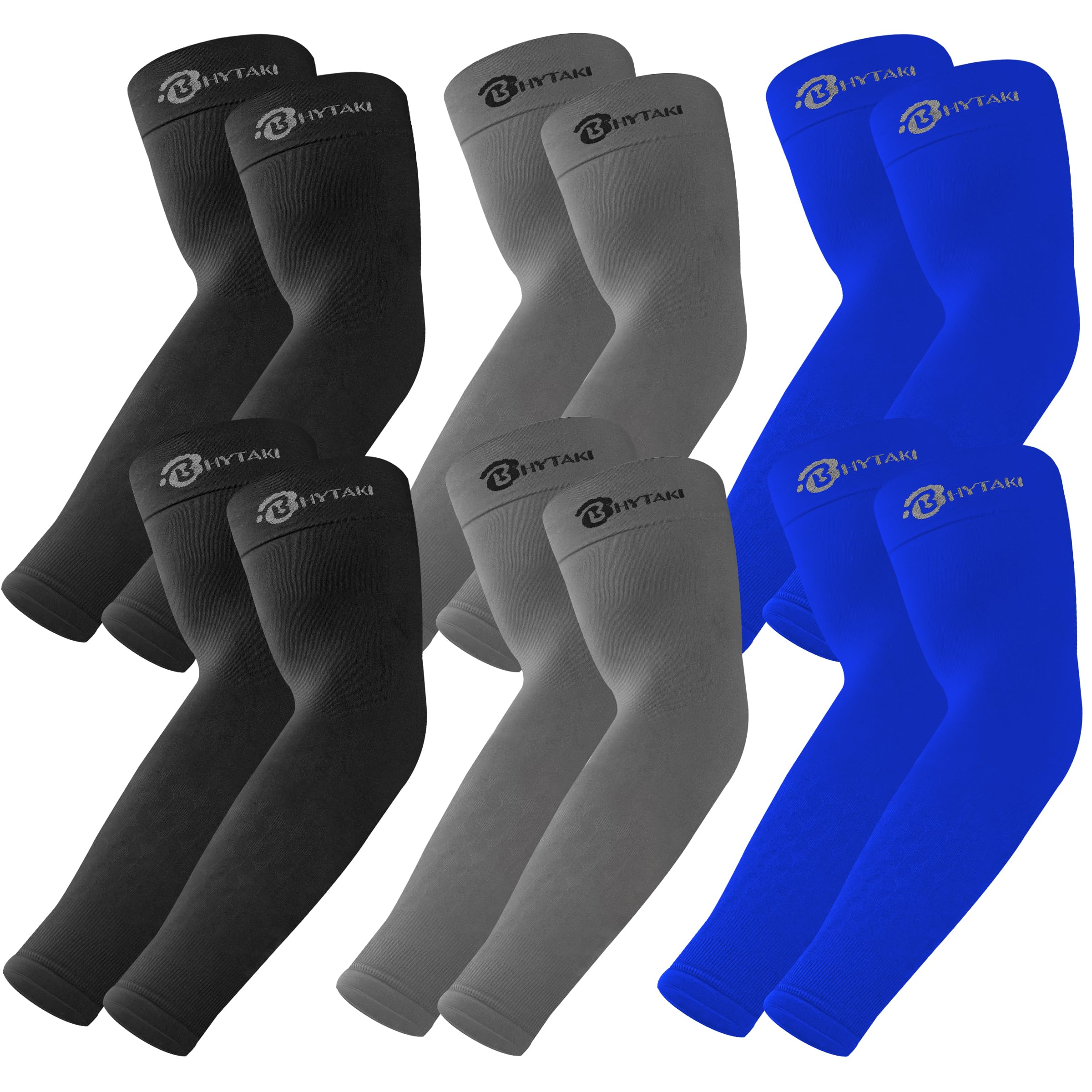 【Arm Sleeves UPF50+ Protection Design】Our arm sleeves set contains 6 pairs of ice sleeves (2 pairs of black + 2 pairs of dark gray + 2 pairs of treasure blue). Our UPF 50+ sun sleeves for men women are made of high-quality soft fabric with added anti-ultraviolet ingredients , can really block up to 98% of harmful UVA and UVB rays, can block harmful sunlight when playing golf, shooting, running, cycling, gardening, working, etc., and prevent skin from sunburn and aging.