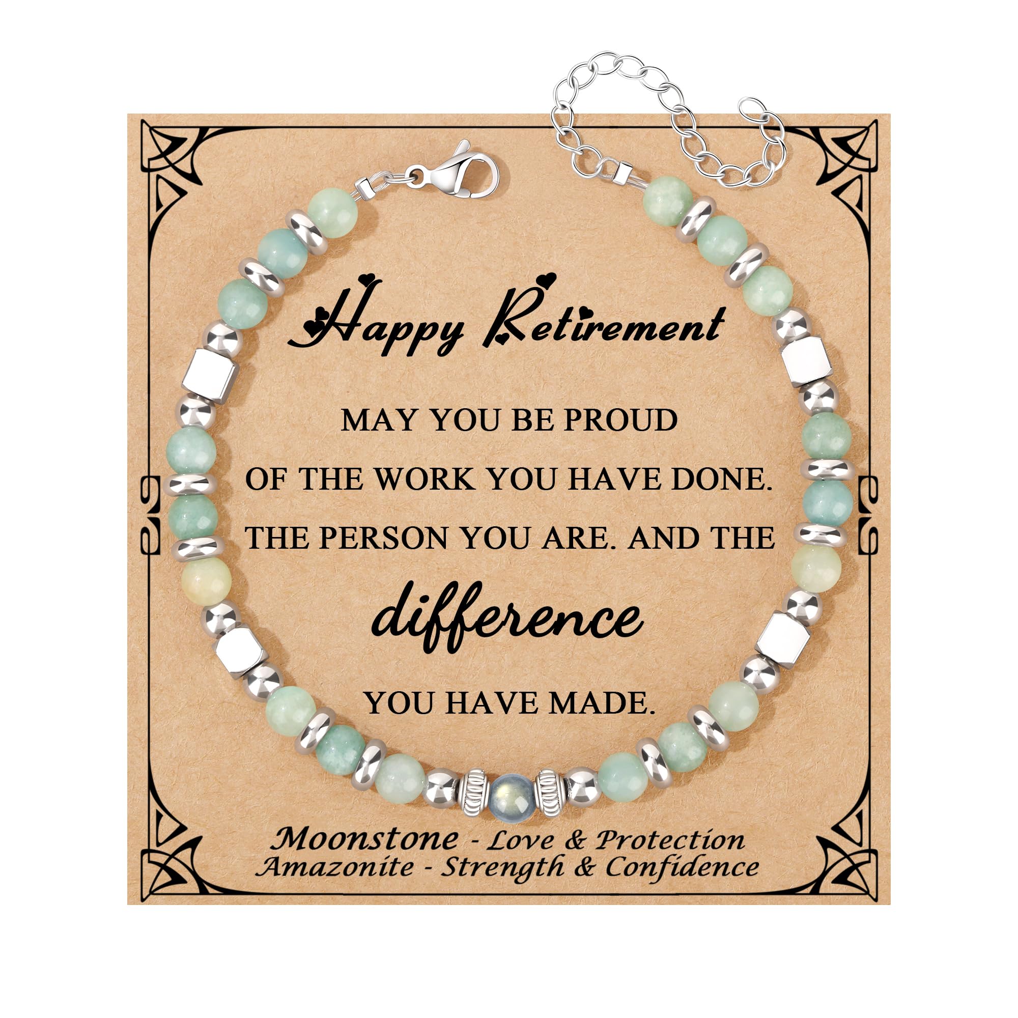 ๐Teacher Coworker Nurse Retirement Gifts for Women: Every bracelet is one-of-a-kind, just like youโno two natural stones are ever exactly the same. A Meaningful bracelet and a Heartfelt card in a gift box - The nice surprise for her. When she receives such an exquisitely adorable bracelet, reads the heartfelt words on the card, and understands the meaning it represents, she will surely be utterly surprised and cherish this gift deeply.