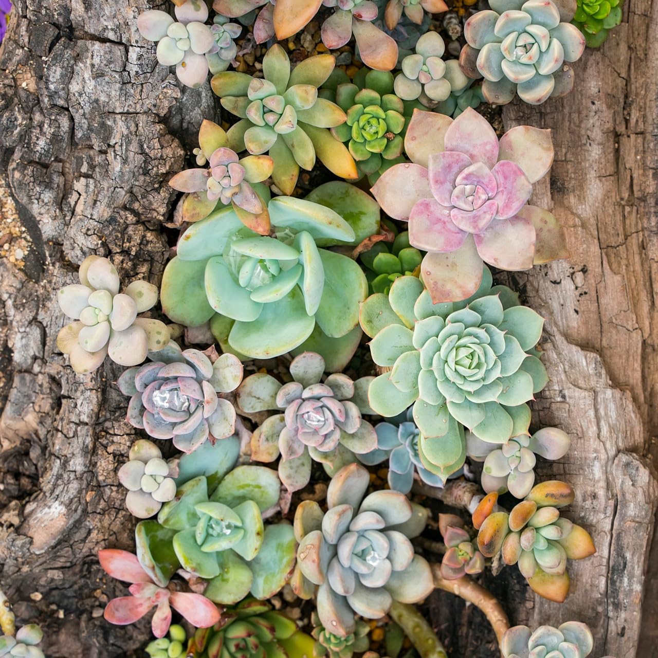 Bulk succulent pack: Includes 25 live Echeveria plants, with 5 each of 5 unique varieties.