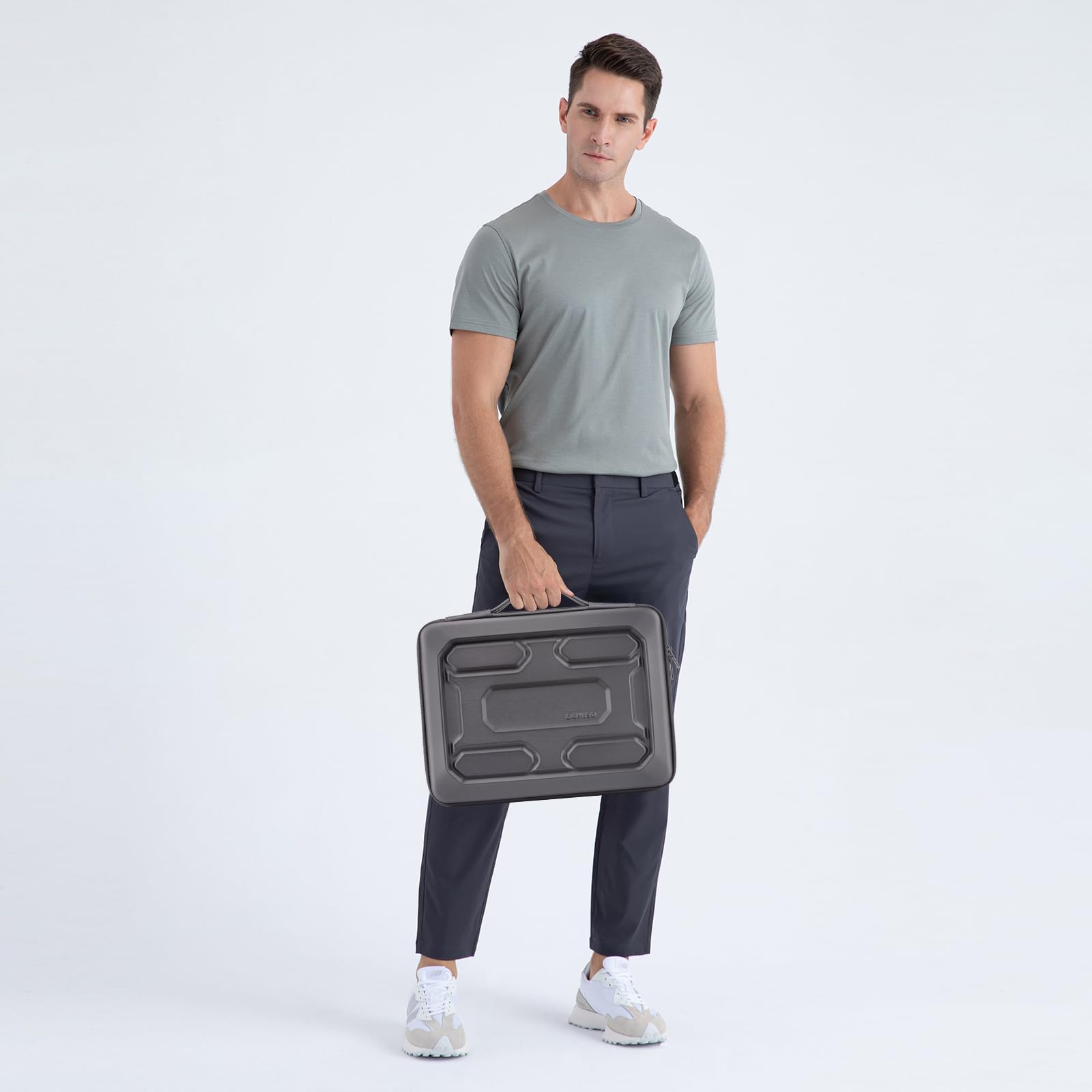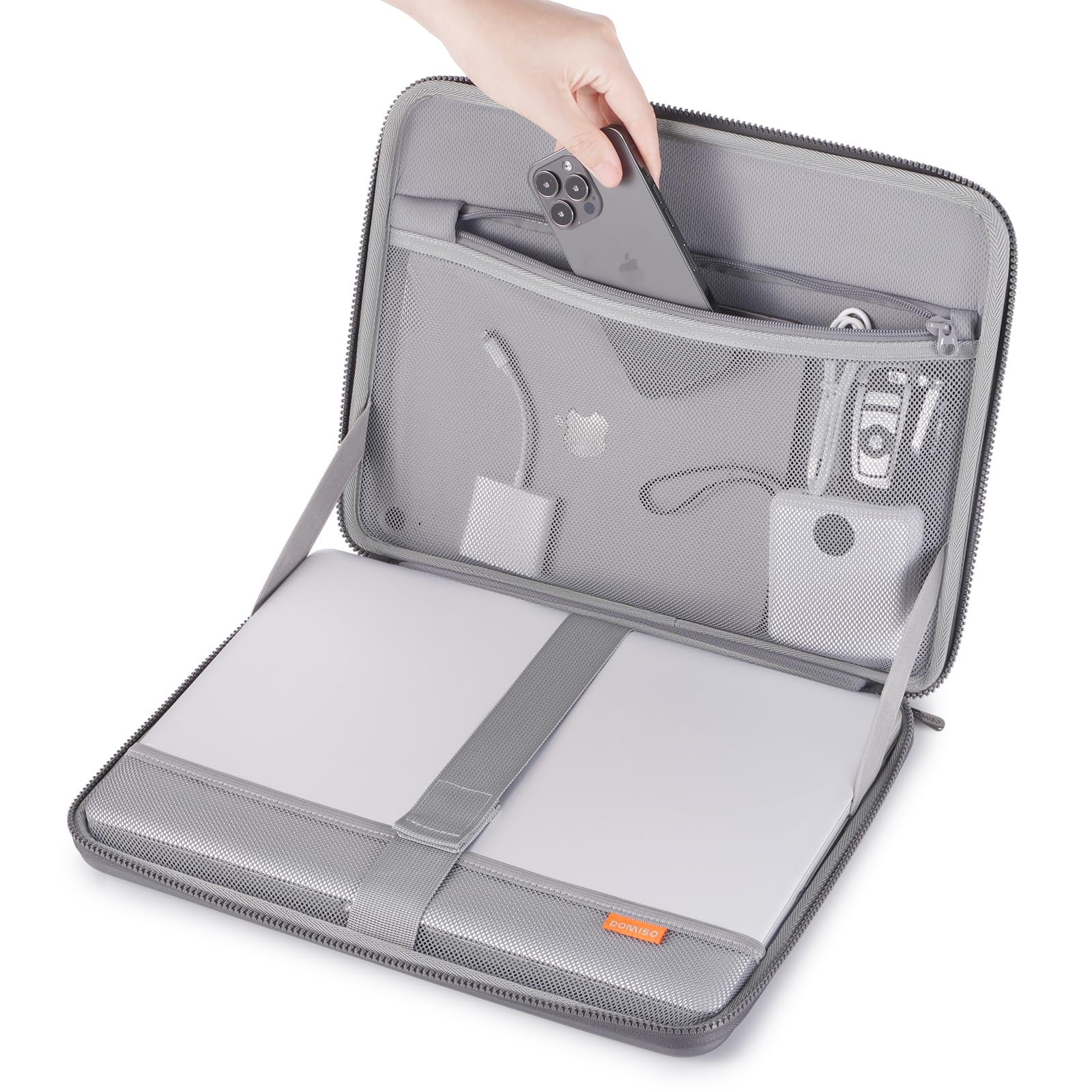 Built-In Bump Protection : Built with a thickened EVA hard shell and soft foam interior, this sleeve absorbs daily knocks and unexpected drops with ease. Whether it's shoved in a crowded backpack or tossed onto a TSA tray, your laptop is cushioned on all sides. It's perfect for frequent travelers, commuters, and students who demand impact protection without bulk.