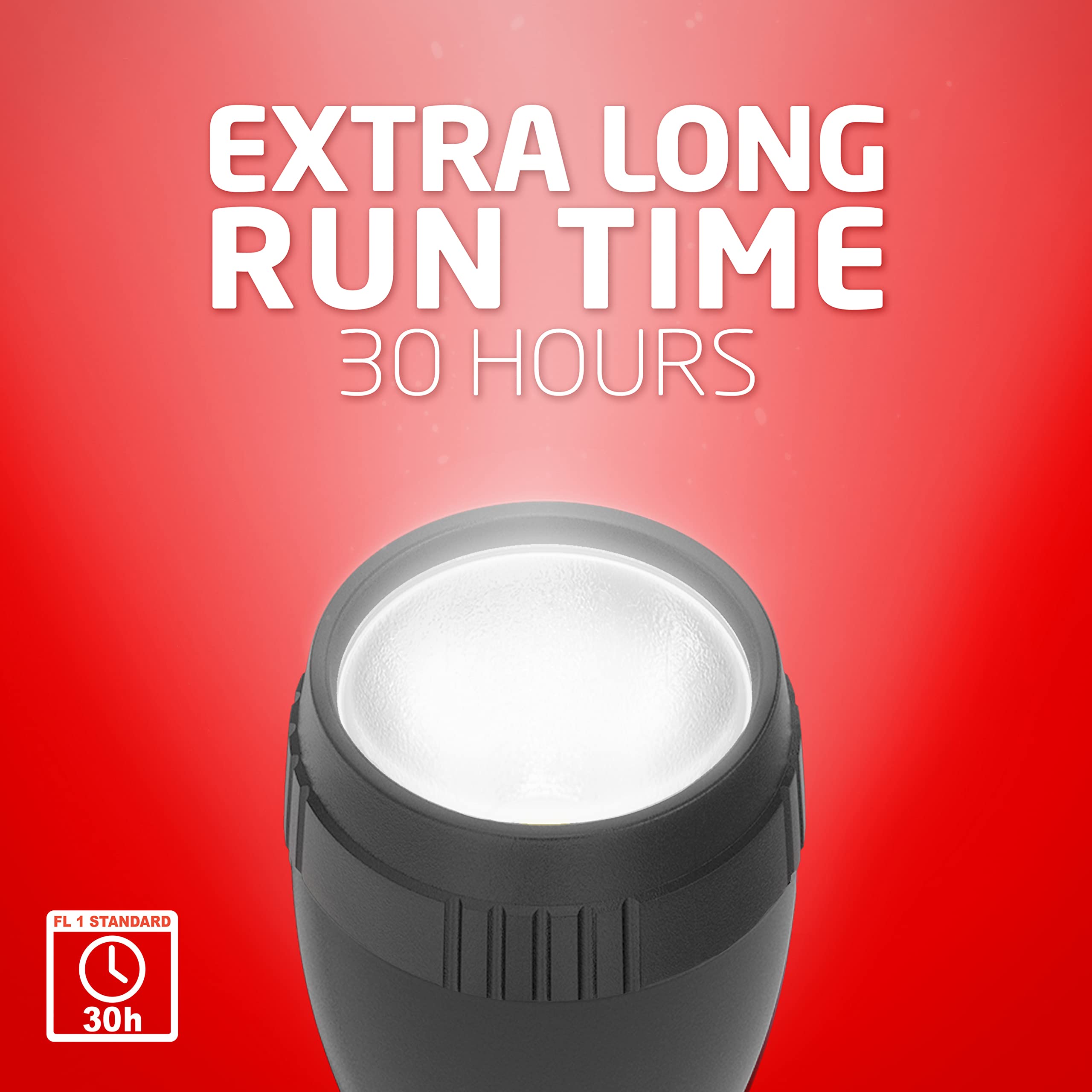 [EMERGENCY FLASHLIGHT]: Prepare for power outages with these eight (8) long-lasting EVEREADY LED Flashlights. Includes sixteen(16) AA batteries for use right out of the box [LONG RUNTIME]: Handheld flashlight with an extra-long runtime of 3 hours for reliable lighting whenever you need it [BRIGHT LIGHT]: Bright LED flashlight is an ideal emergency flashlight or for general use to help you protect your family and get the lighting you need [SUPERIOR LED TECHNOLOGY]: Energy-efficient LED technology shines up to 5x brighter than ordinary LED technology for adequate illumination no matter what the job [EASY GRIP DESIGN]: LED light has a ribbed, non-slip grip for convenient use that makes it easier to hold onto this flashlight [BUY WITH CONFIDENCE]: Trust in the EVEREADY brand for reliable power