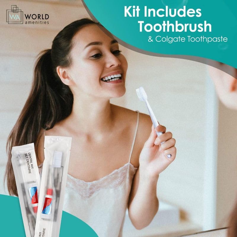 BULK QUANTITY FOR CONVENIENCE: World Amenities provides you with a bulk package of 25 LUXURY NECESSITIES toothbrushes and toothpaste kits individually boxed for convenient restocking