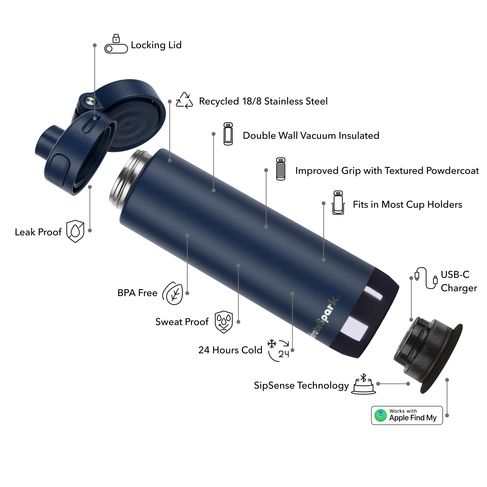 AUTOMATIC HYDRATION TRACKING β SipSense powered sensor uses advanced weight sensing to track every sip and syncs to the app to count toward your daily hydration goal. USB-C rechargeable with up to 21 days of battery life per charge.