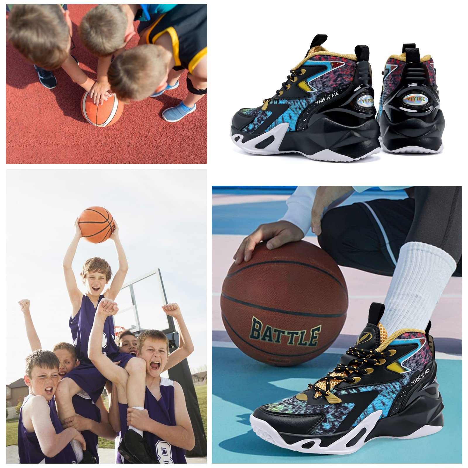 Kids basketball shoes with unique air cushion design which provides cushionin, with TPR bottom which increases the friction between the sole and the ground. They protect children's ankles & knees effectively, and prevents injuries when they have sports activites.