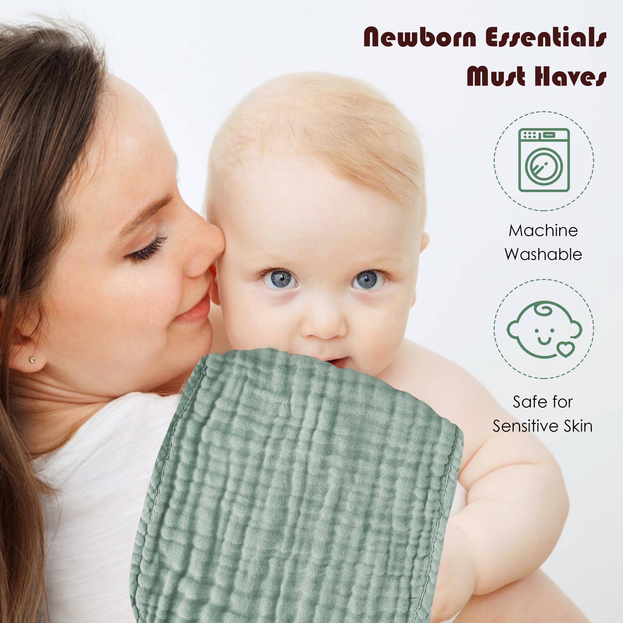SUPER ABSORBENT: Featuring muslin design, these baby washcloths offer superior softness, breathability, and absorbency. The quick-drying fabric is perfect for keeping baby's skin dry and comfortable.