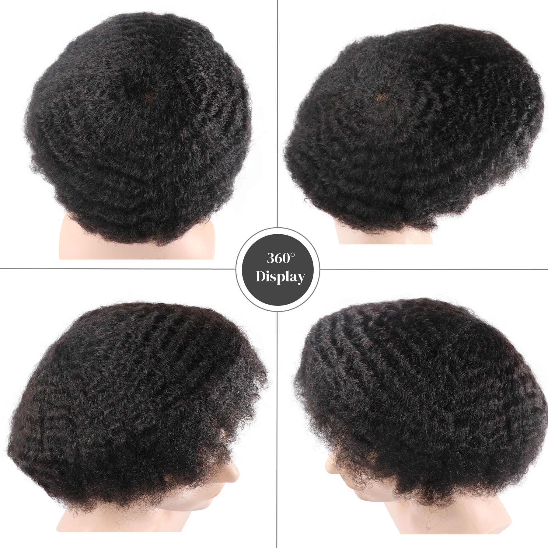 【Customizable 10x8 Inch Hair System】This mens toupee human hair comes with a 10x8 inch base, perfect for full head coverage.This afro toupee for black men can be trimmed to custom sizes like 9x7 inches for a perfect fit. A versatile mens toupee human hair that adapts to your head shape and styling needs, offering a secure, natural-looking result.