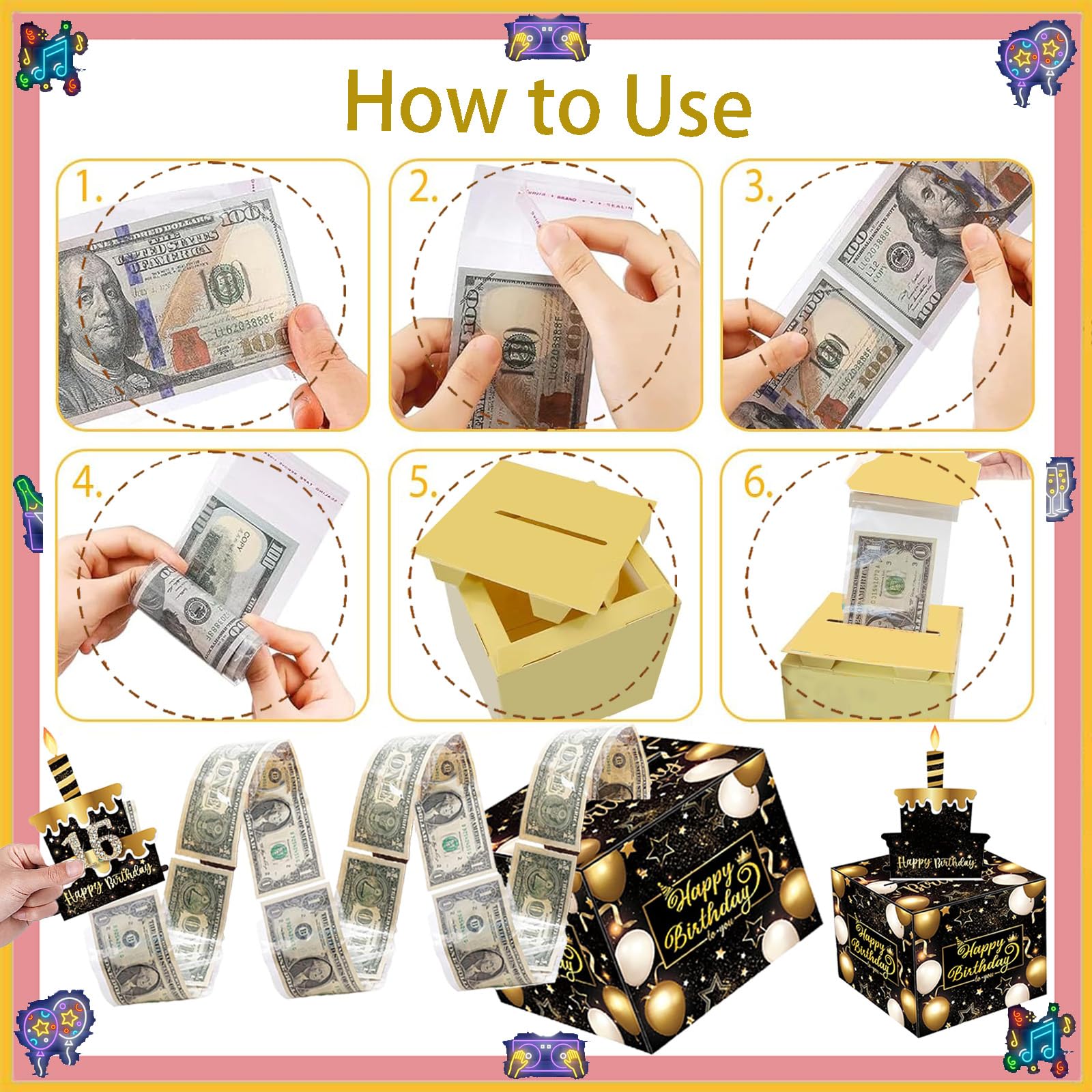 【Unique Gift】The birthday money box for cash gift pull make a surprise for your family and friends, it's exciting for you to keep pulling the string of cash and sensing the value. the money box is a great product for all age! DIY a surprise money roll gift box is a way to delivery your love.