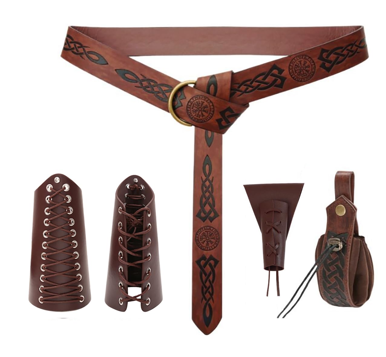 All the accessories are all made of high quality leather with detailed medieval patterns, and are matched with medieval costume