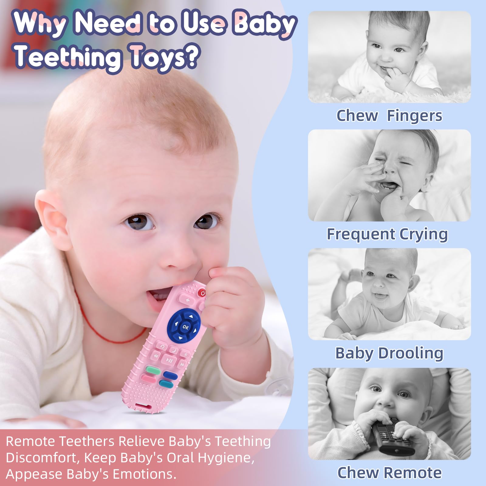 【Perfect 3-6 Months Baby Teething Toy】 Let your little one sink their teeth into something fun and safe! Our 3 6 12 18 months infant teething toys look just like real remote controls, complete with rich colors and realistic button designs. They're perfect for soothing sore gums, promoting hand-eye coordination, and keeping your baby happy and engaged for hours on end.