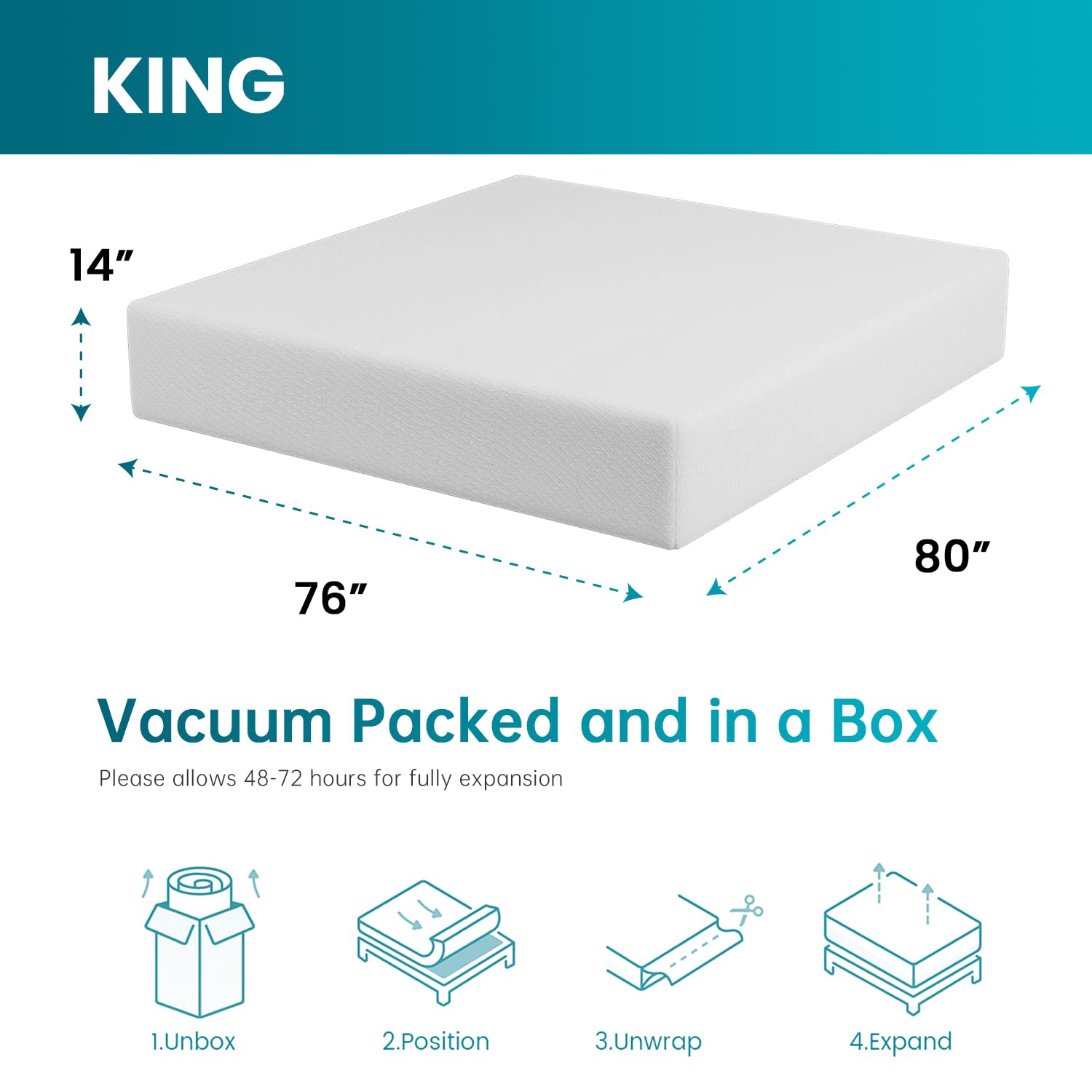 DUAL-LAYER CONSTRUCTION: This King Mattress features a total thickness of 14 inches, consisting of a 3-inch layer of gel memory foam over a 11-inch high-density base support foam core.