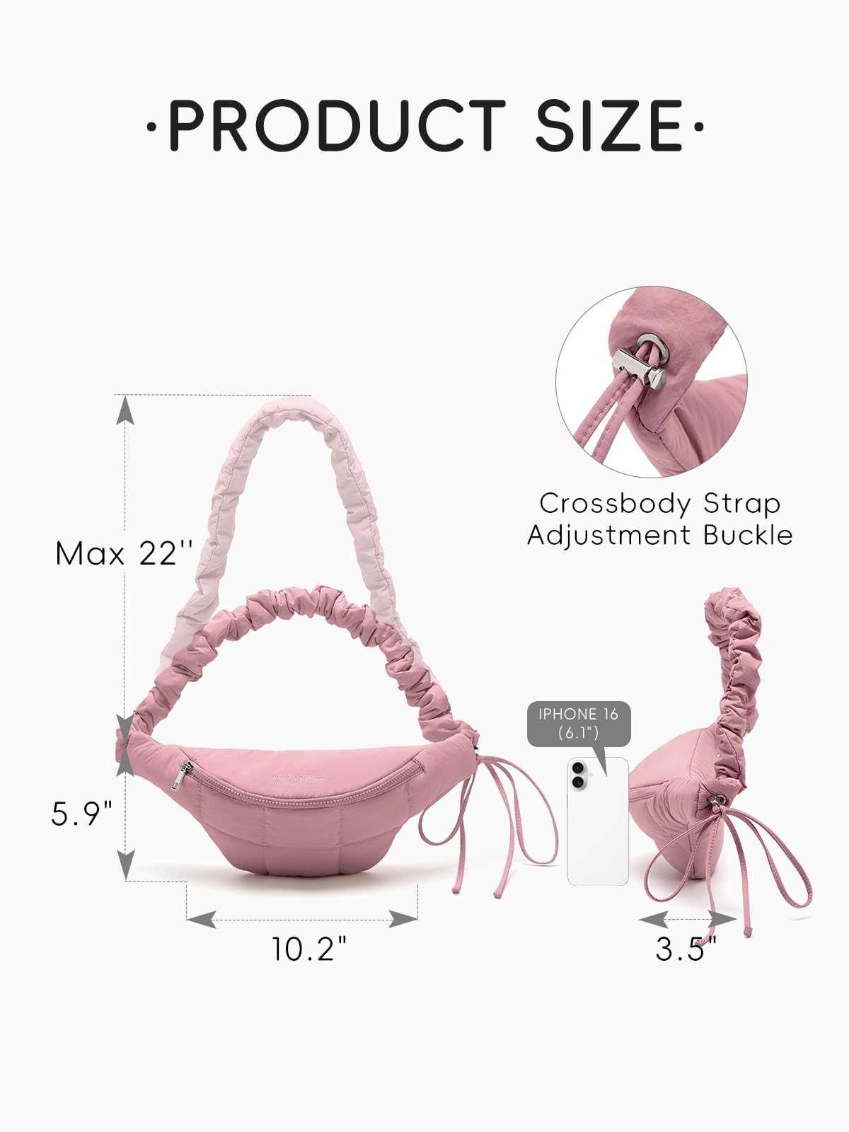 Perfect Compact Size & Durable Material: Measuring 10.2ββΓ3.5ββΓ5.9ββ(L*W*H), this lightweight womenβs sling bag weighs only 0.29lb β lighter than your smartphone! Crafted from durable, water-resistant nylon, this quilted belt bag keeps essentials secure and dry through daily adventures.