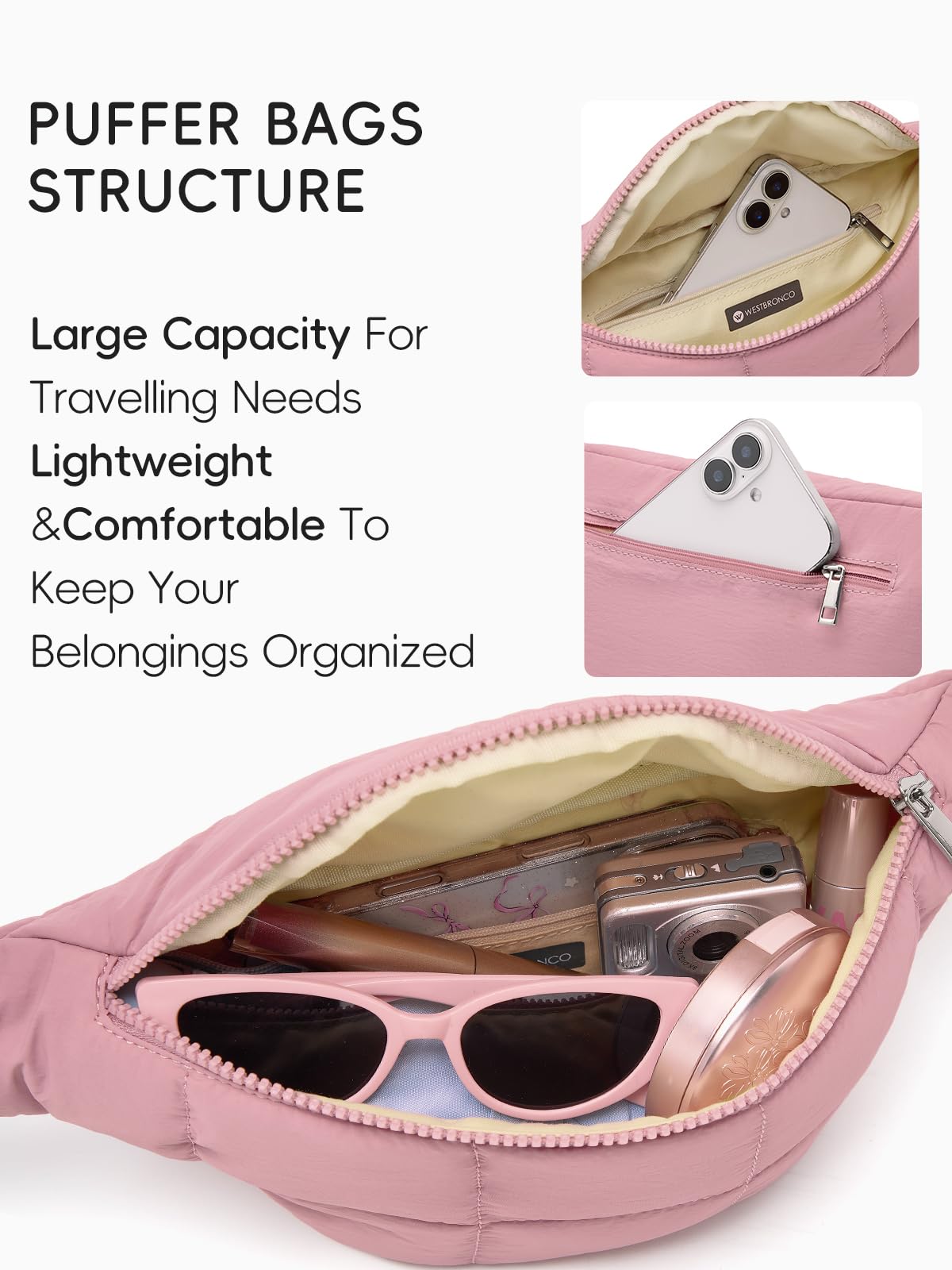 Stylish & Versatile Wear: Versatile for Any Occasion: "A puffer bag can effortlessly complement various outfits," says Brenda Iris, image consultant, stylist. This travel sling bag features contemporary stitching and a fashion-forward puffed design, making it a chic crossbody belt bag ideal for errands, travel, or casual outings.
