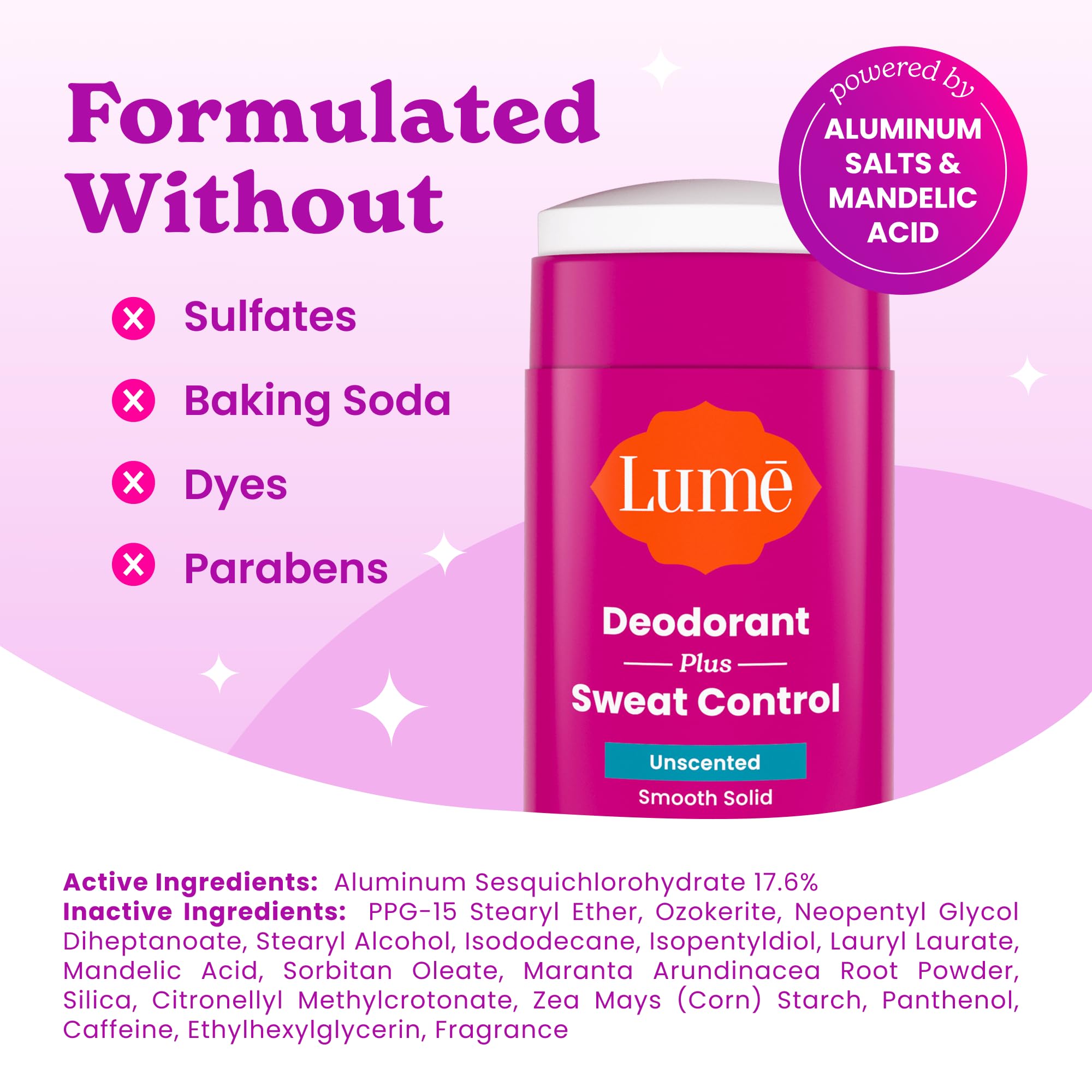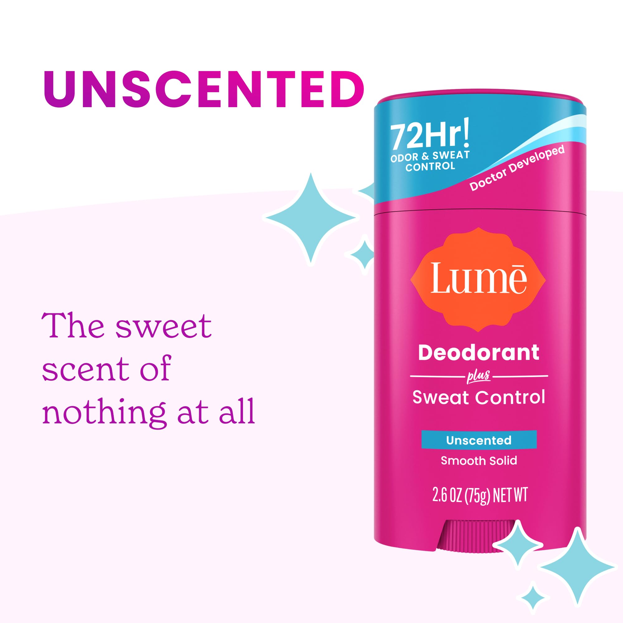 UNSCENTED - The ideal choice for those who prefer the scent of nothing at all. Combine with Lume Whole Body Deodorant for privates and beyond for head to toe confidence.