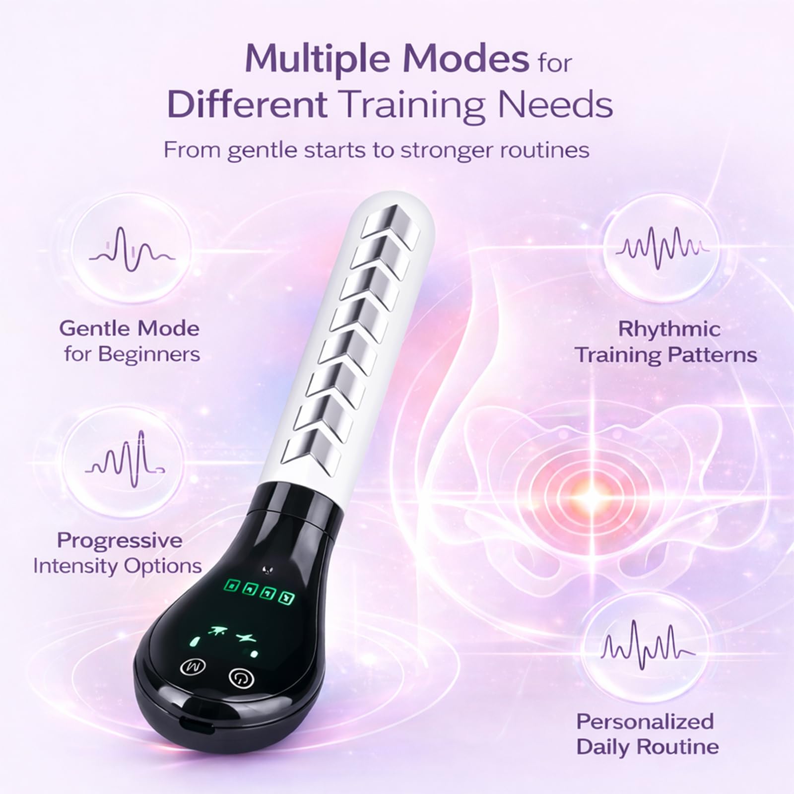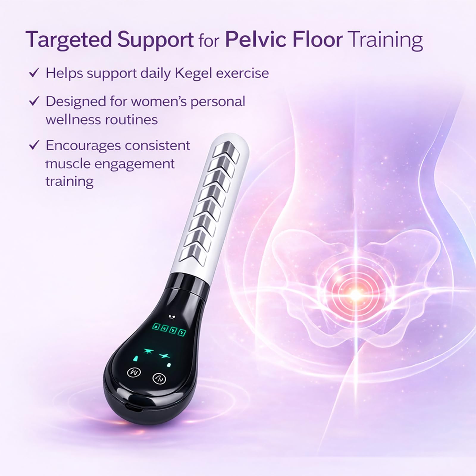 Comfortable and Ergonomic Pelvic Floor Massager Design This smooth, ergonomic pelvic floor massager conforms to the curves of a woman's body, helping you more easily feel and exercise your pelvic floor muscles. Its compact and discreet design, resembling personal care products, makes it convenient for home storage and use, avoiding embarrassment
