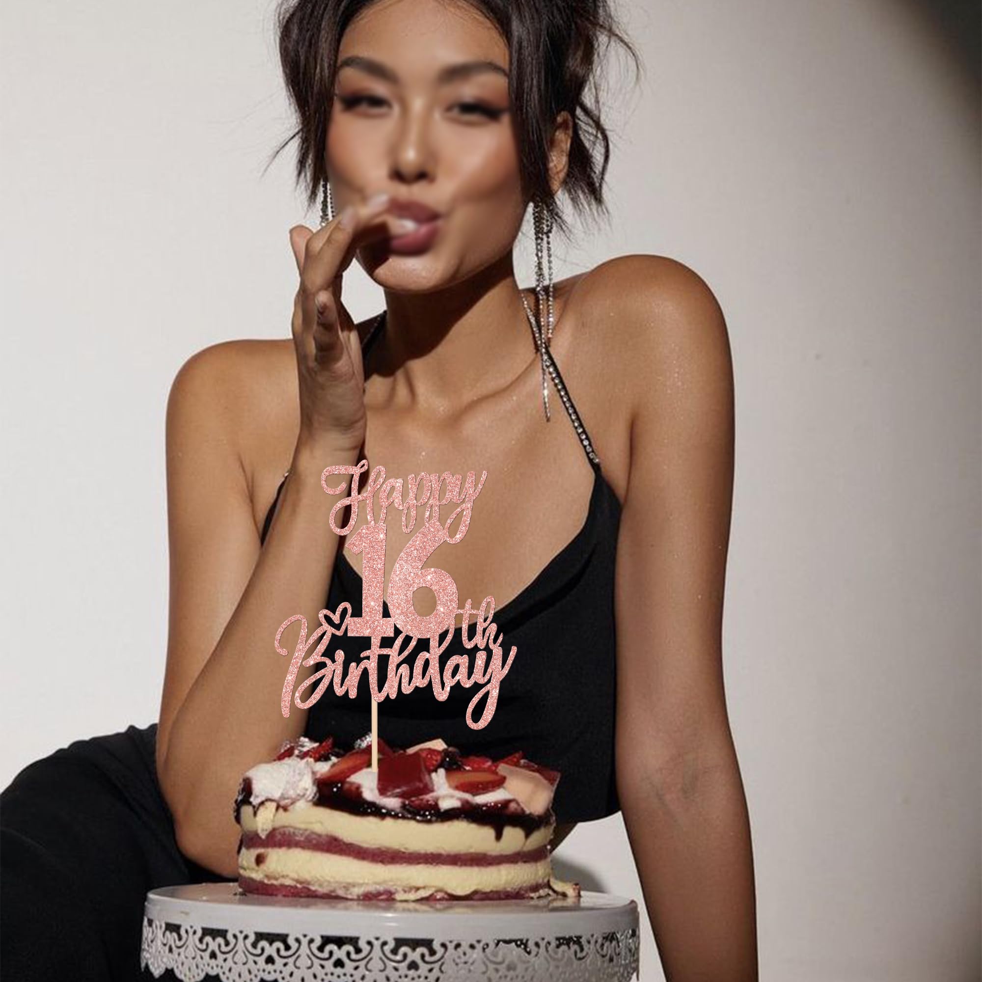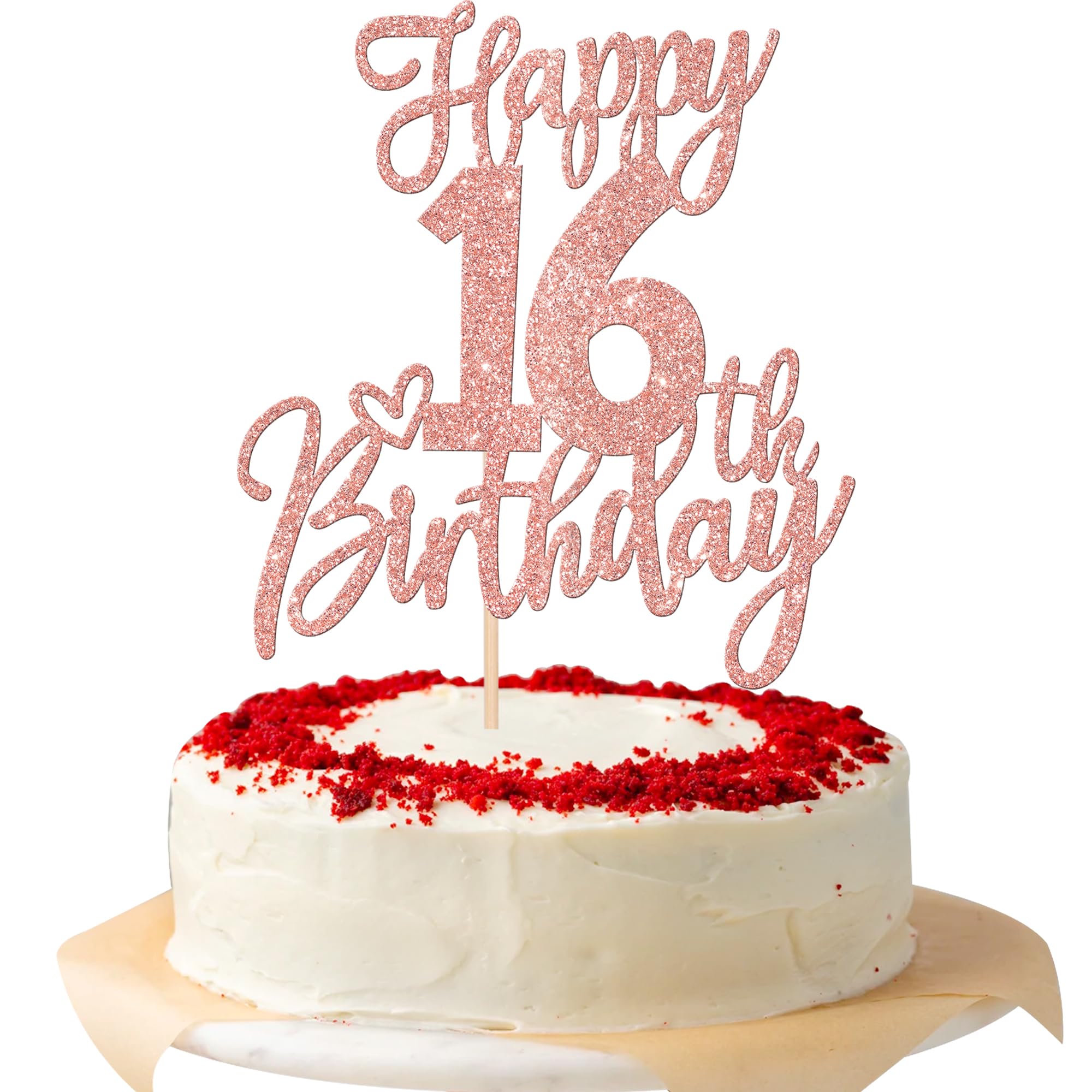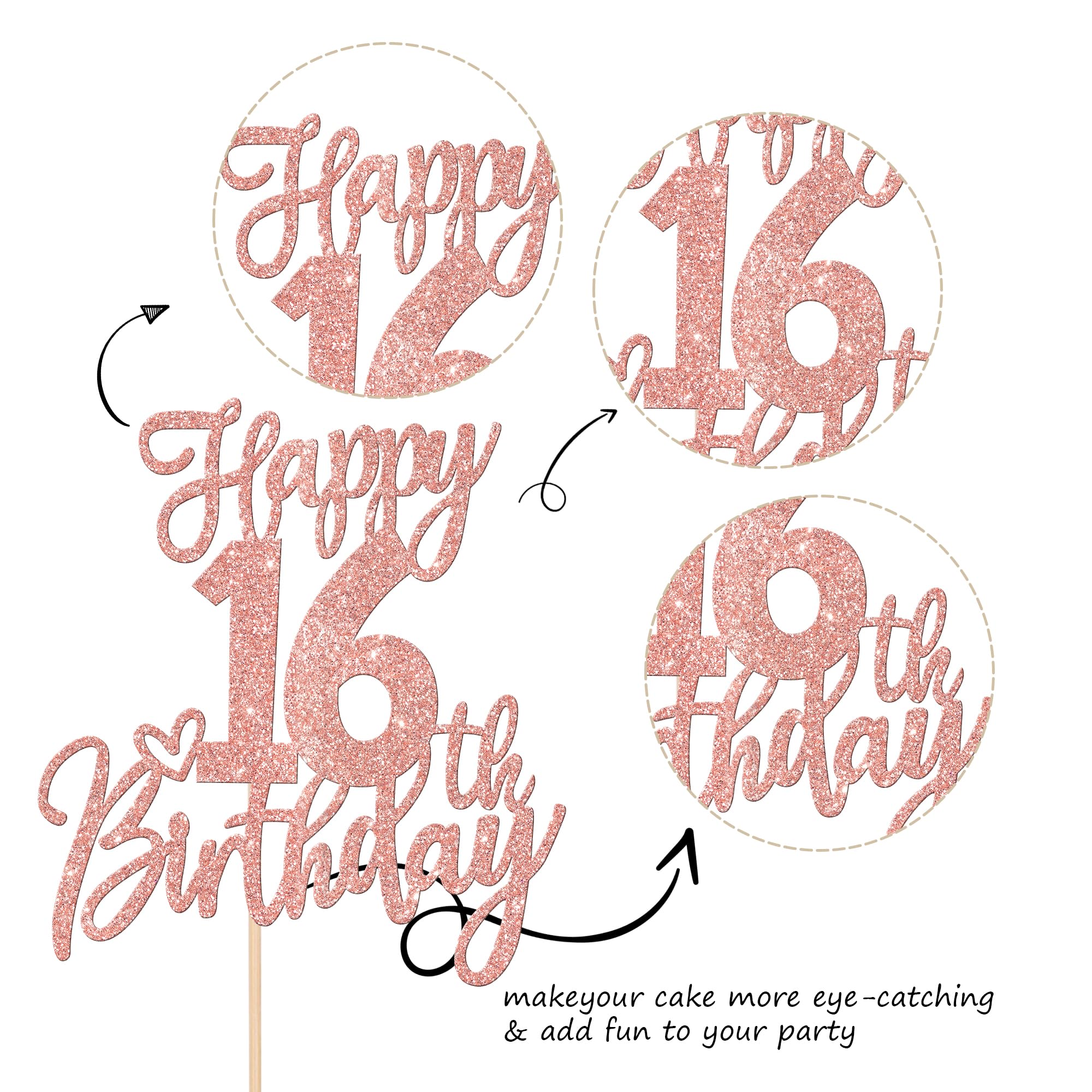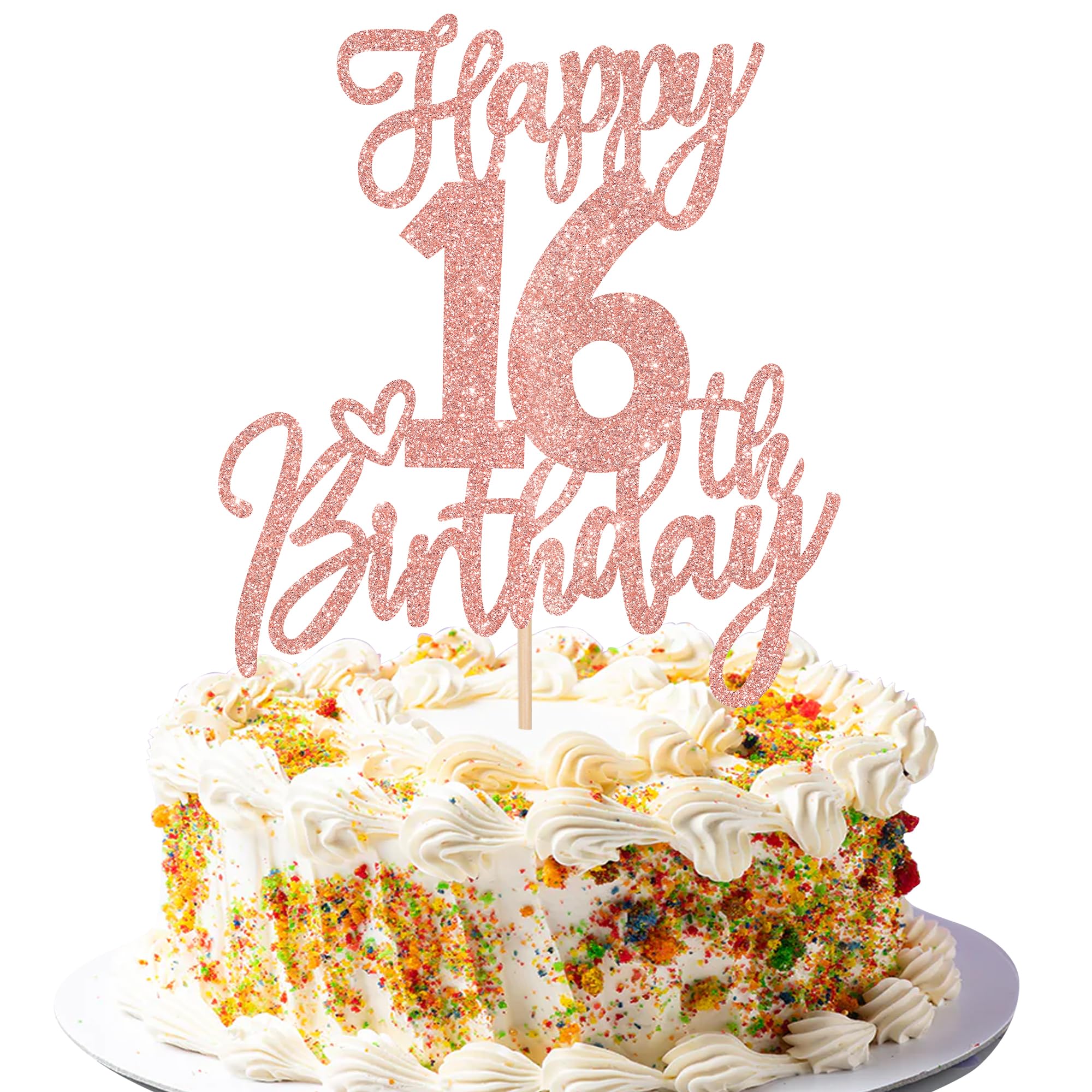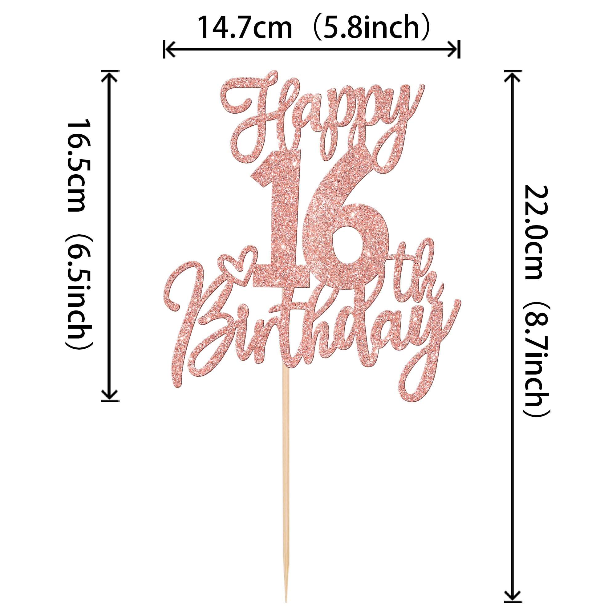 Happy 16th Birthday Cake Topper for Happy 16th Birthday Theme Party Cake Decorations Supplies Perfect for happy 16th birthday theme party,cheers to 16 years theme party,16th anniversary theme party cake decorations supplies. Pack of 1 pcs. The size is W 5.8 inch * H 8.7 inch / W 14.7 cm * H 22 cm ( with stick ) Made of high quality paper card stock and food grade sticks,thick and sturdy. This cake topper is one side glitter, another side is white, and this is intended for decoration only, please do not put them in oven or microwave. If the item you received has any defects, please contact us for refund.we will deal with it within 24 hours.