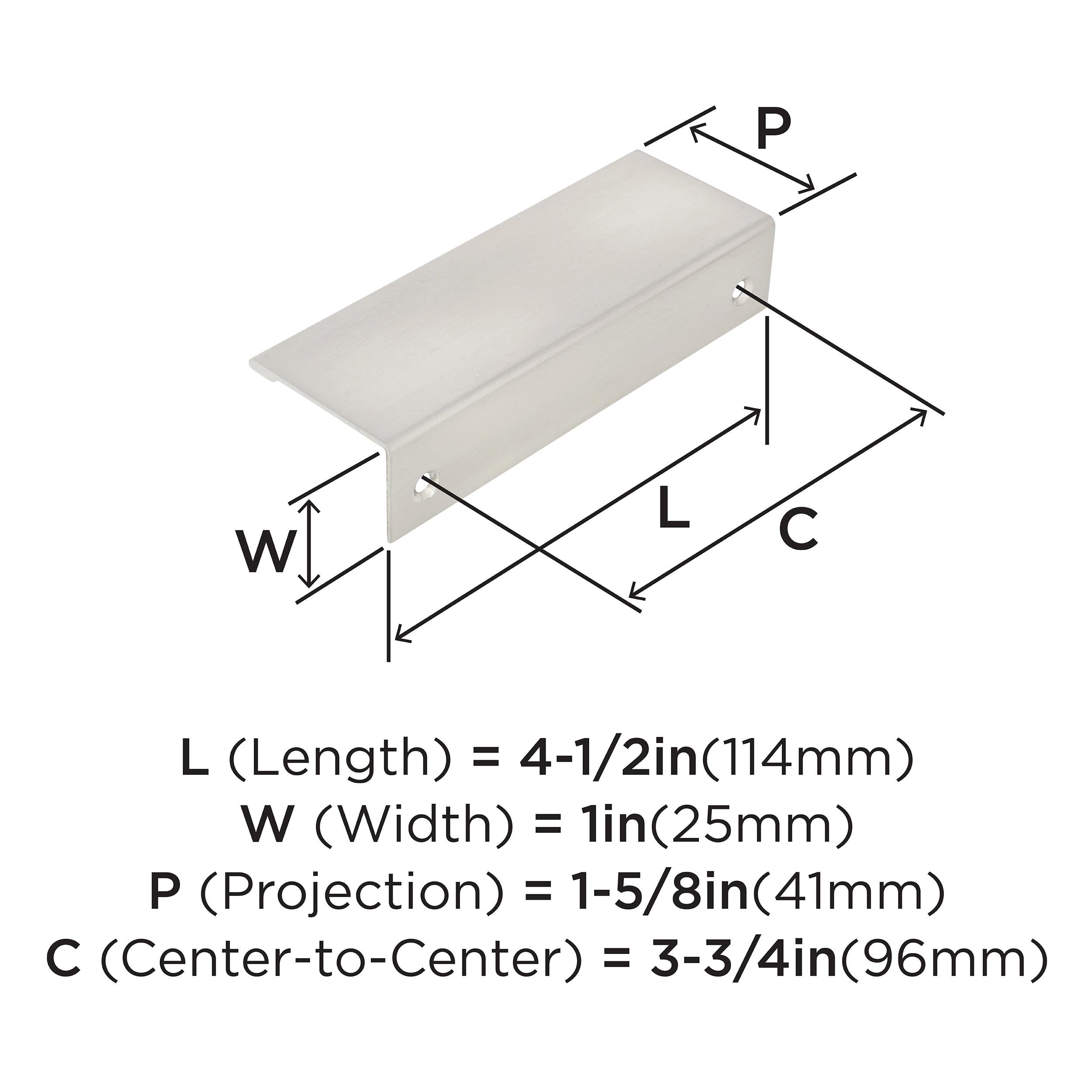 The Amerock 2000853 Edge Pulls 3-3/4 inch (96mm) Center-to-Center Edge Pull is finished in Satin Nickel and sold in a pack of 10. An elegant, understated accent, the Edge Pulls collection, enhances modern, minimalistic style. Enduring and versatile, satin nickel marries delicate brushing with a subtle warm hue to produce an approachable, classic presentation that resonates across all design styles. Founded in 1928, Amerock’s award-winning home solutions including decorative and functional cabinet hardware, bath accessories, decorative hooks and wall plates have built the company’s reputation for chic design accessories that inspire homeowners to express their personal style. Amerock offers a variety of styles and finishes at affordable prices that add the perfect finishing touch to any room.
