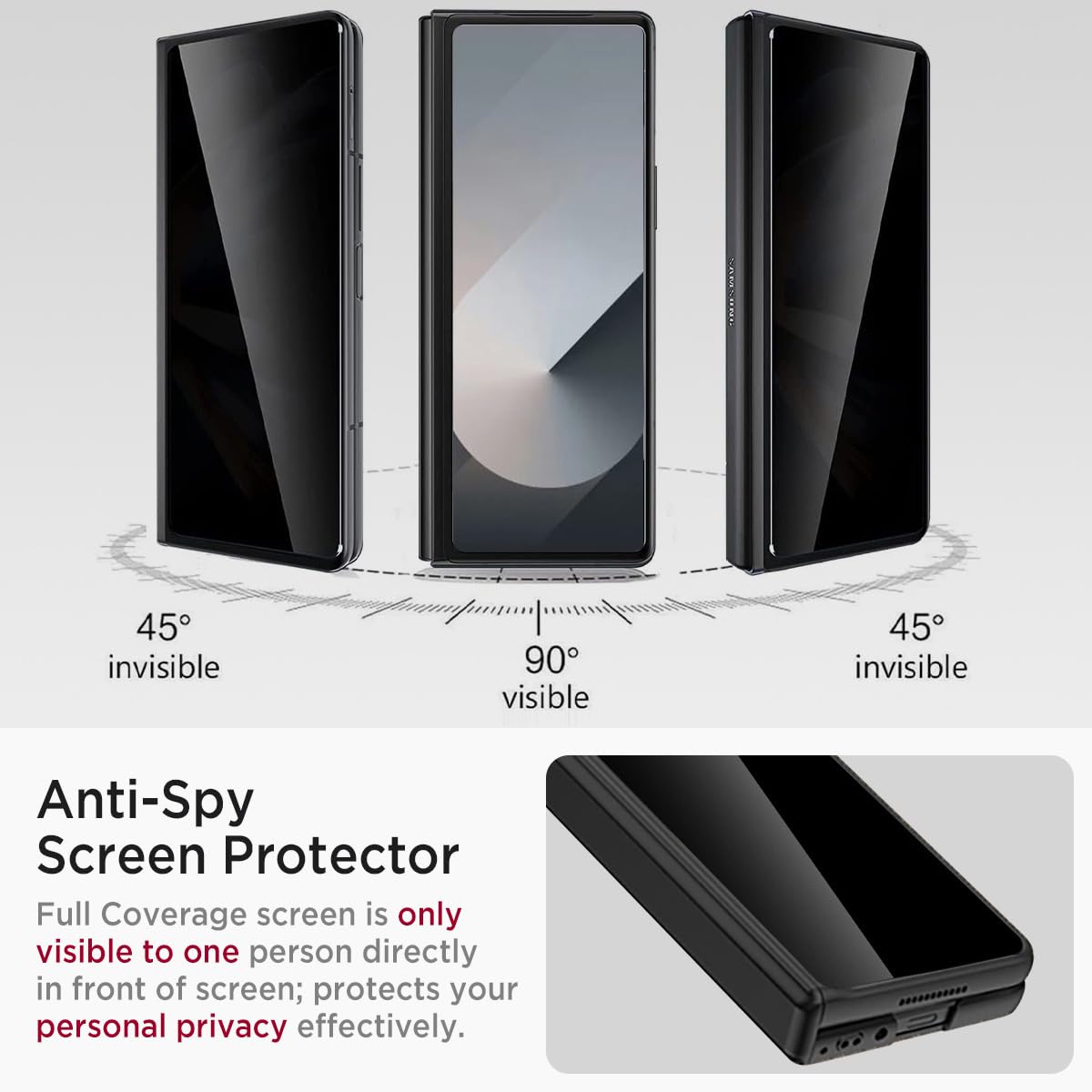 【Privacy Tempered Glass Screen Protector】With high-quality privacy tempered glass screen protector for Z Fold 6 5G. The screen is only visible to persons directly in front of the screen and does not affect power. Z Fold 6 Privacy Screen will keep all your personal information away from the eyes of strangers around you. Also, providing you shatterproof protection against impacts from any angle. Note: Not fit for Galaxy Z Fold 5.