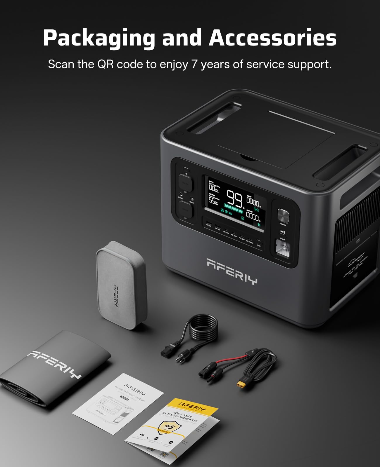 【Portable Package】Premium LiFePO4 battery: high-density, compact, lightweight (20% lighter, 48.5 lbs/22 kg), safer. Contents: power station, AC charger, MC4-XT90 cable, dust cover, wire pouch, user manual.