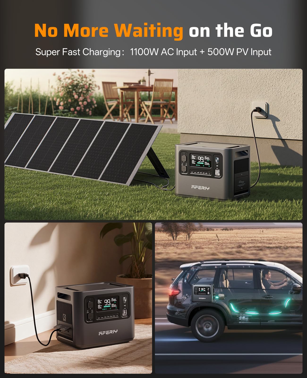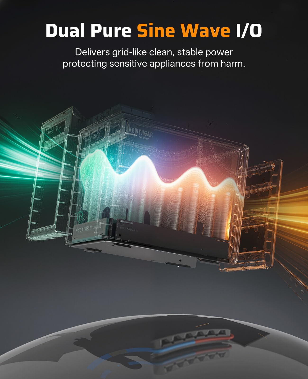 【Pure Sine Wave AC Input & Output Only】 The AFERIY Solar Generator packs a powerful 2400W inverter (4800W surge). It exclusively uses pure sine wave AC for both input and output. This delivers power identical to standard wall outlet power, ensuring safe operation and protecting your sensitive electronics from damage.