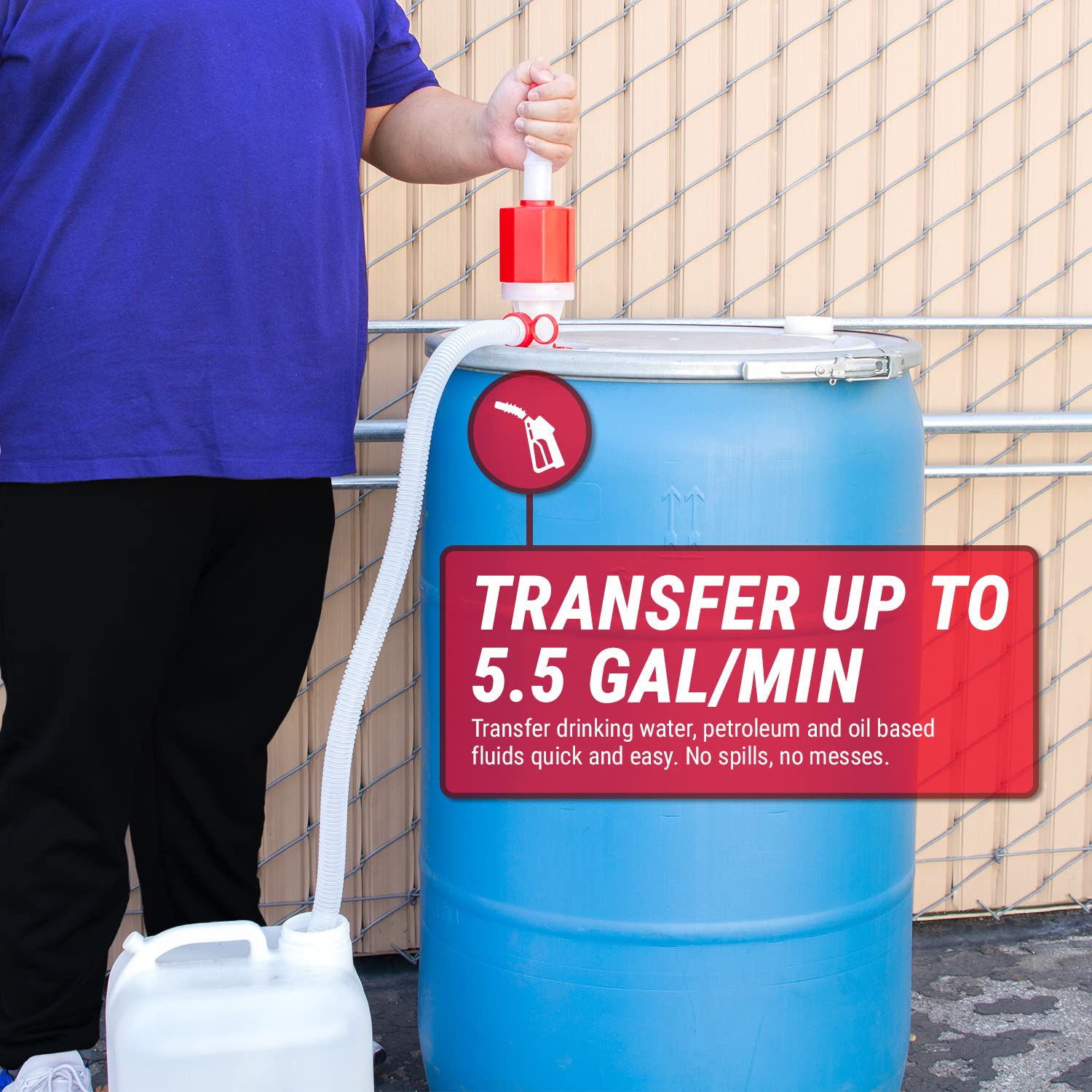 [ MANUAL POWERED ] No Electricity Required: Utilizes lever-action to transfer liquids by a simple grip and pump - Works great with farm equipment, Industrial Vehicles and in Automotive Shops - Quickly Empty 55 Gallon Drum Barrels