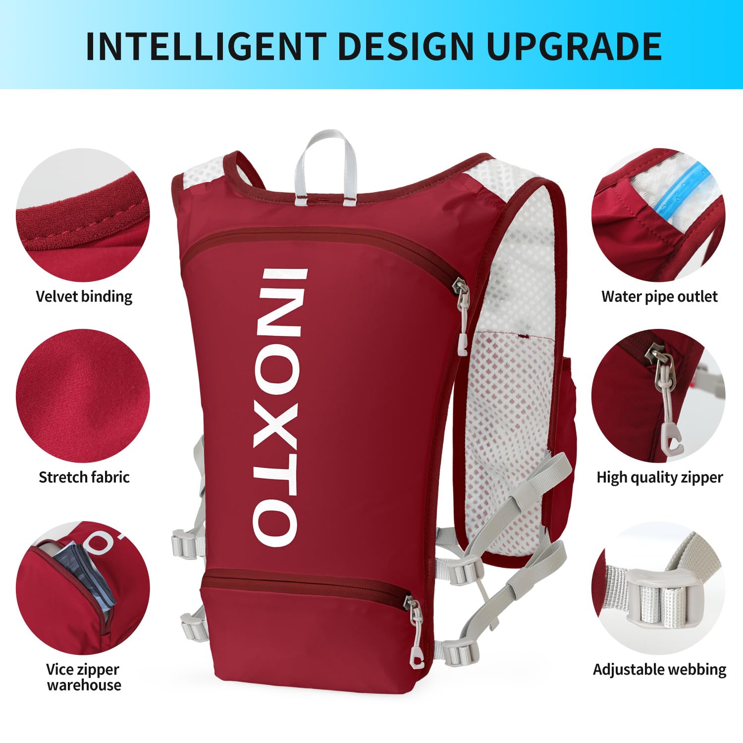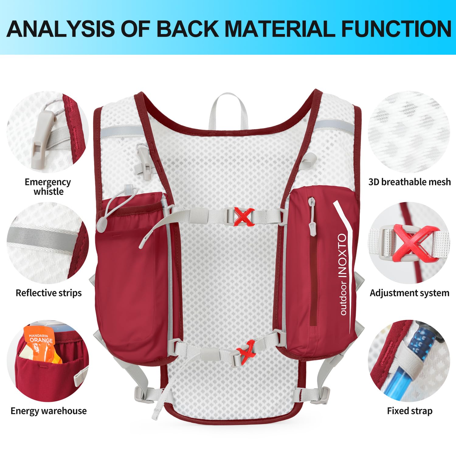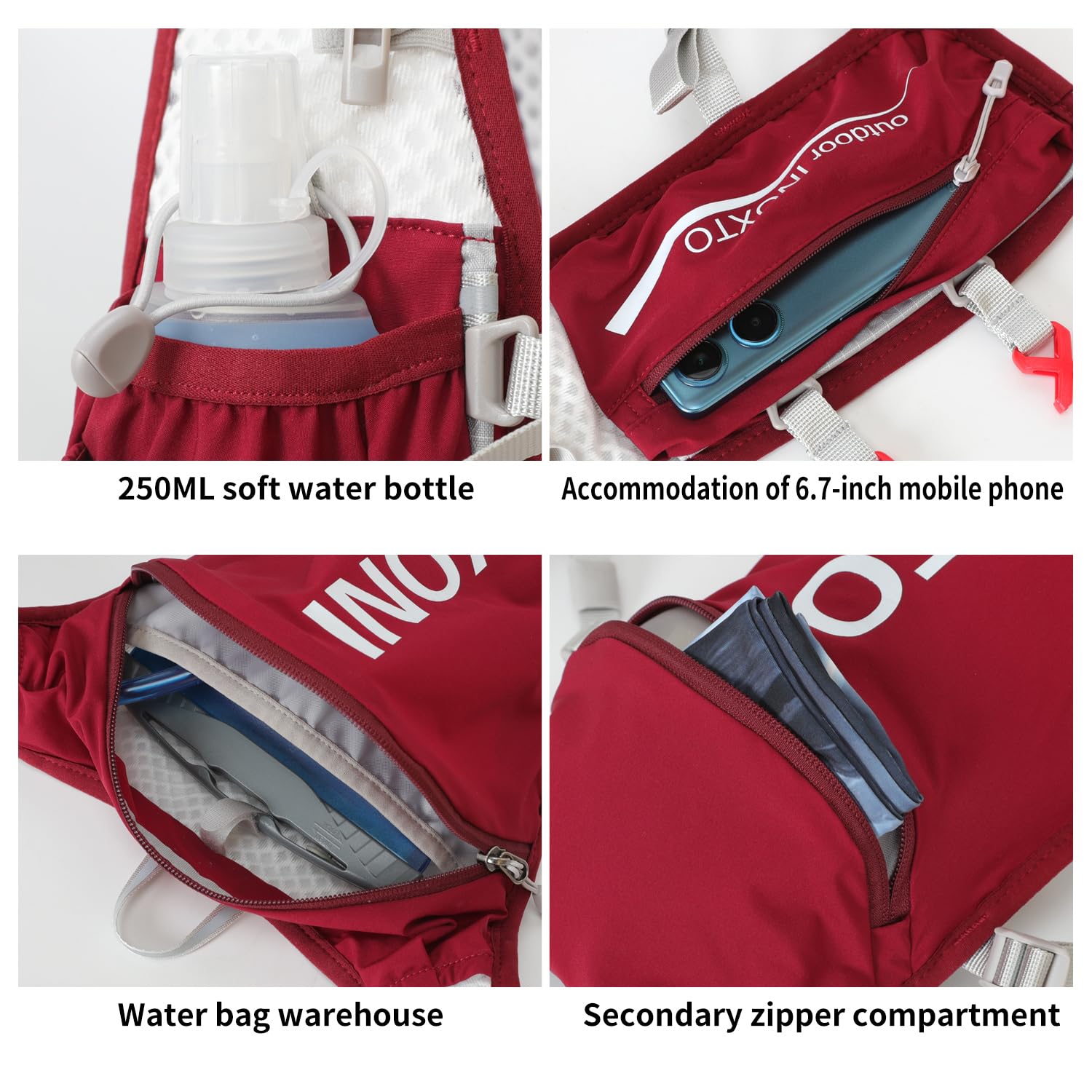 ❤ 【Ultra-lightweight design】 High-quality nylon material and ultra-lightweight design make it more comfortable to drive. The INOXTO Sport Backpack weighs only 140 grams and can hold 1.5 liters in the main compartment. In addition, the left and right belts have pockets for storing 250 ml PET bottles. Next to the main pocket, there is a pocket for storing mobile phones and items, so you can jog while listening to music!