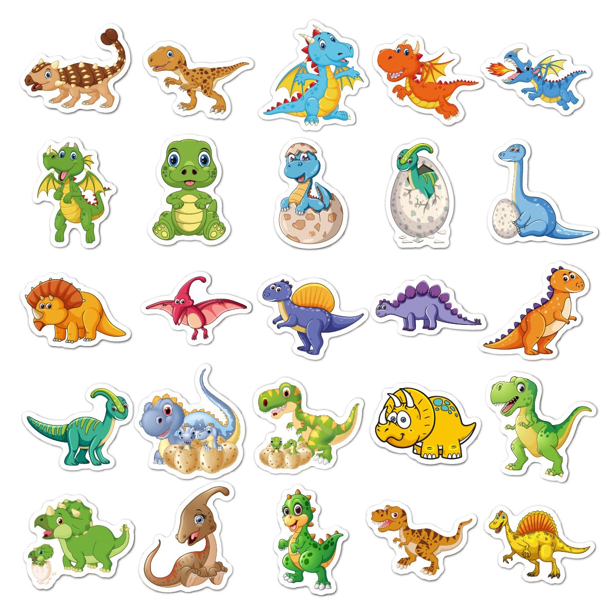 HIGH QUALITY: The cute dinosaur vinyl stickers are made of high quality, eco-friendly, durable vinyl, with high-definition paint and waterproof adhesive which is easy to peer off and use.