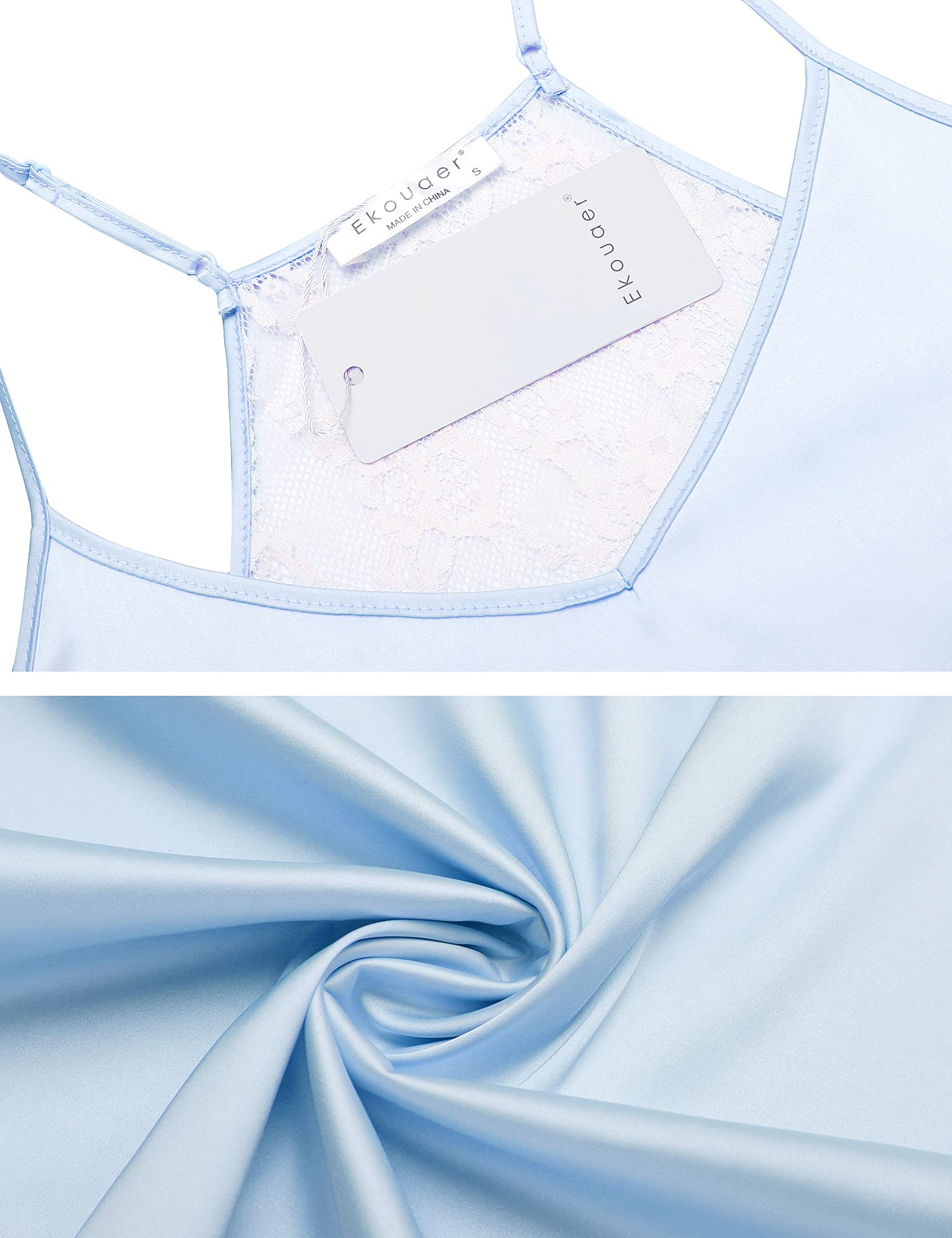 MATERIAL: Ekouaer cami pajama set is made of 95% polyester,high-quality satin fabric give your skin like baby care,ultra-comfortable satin material make you sleep well