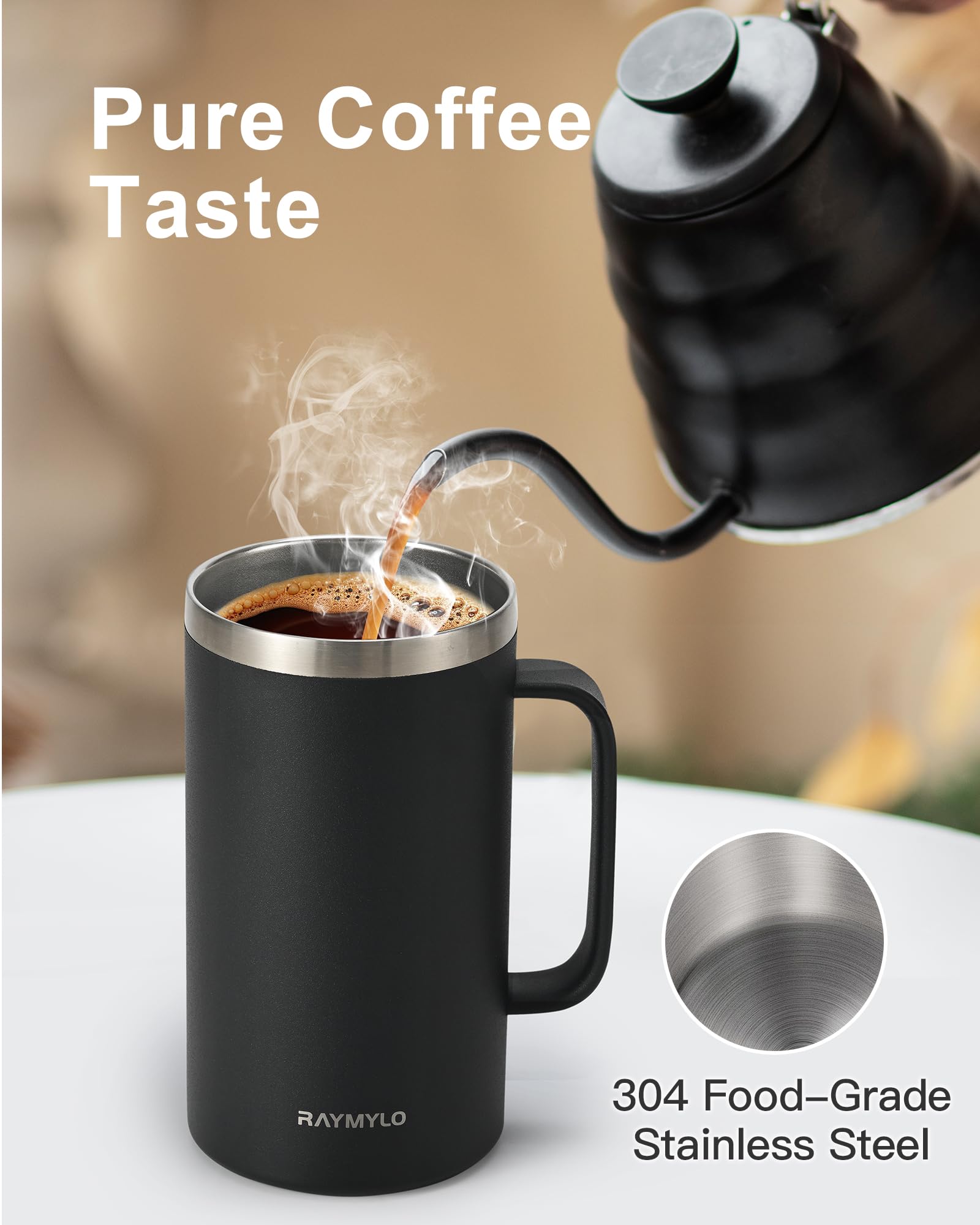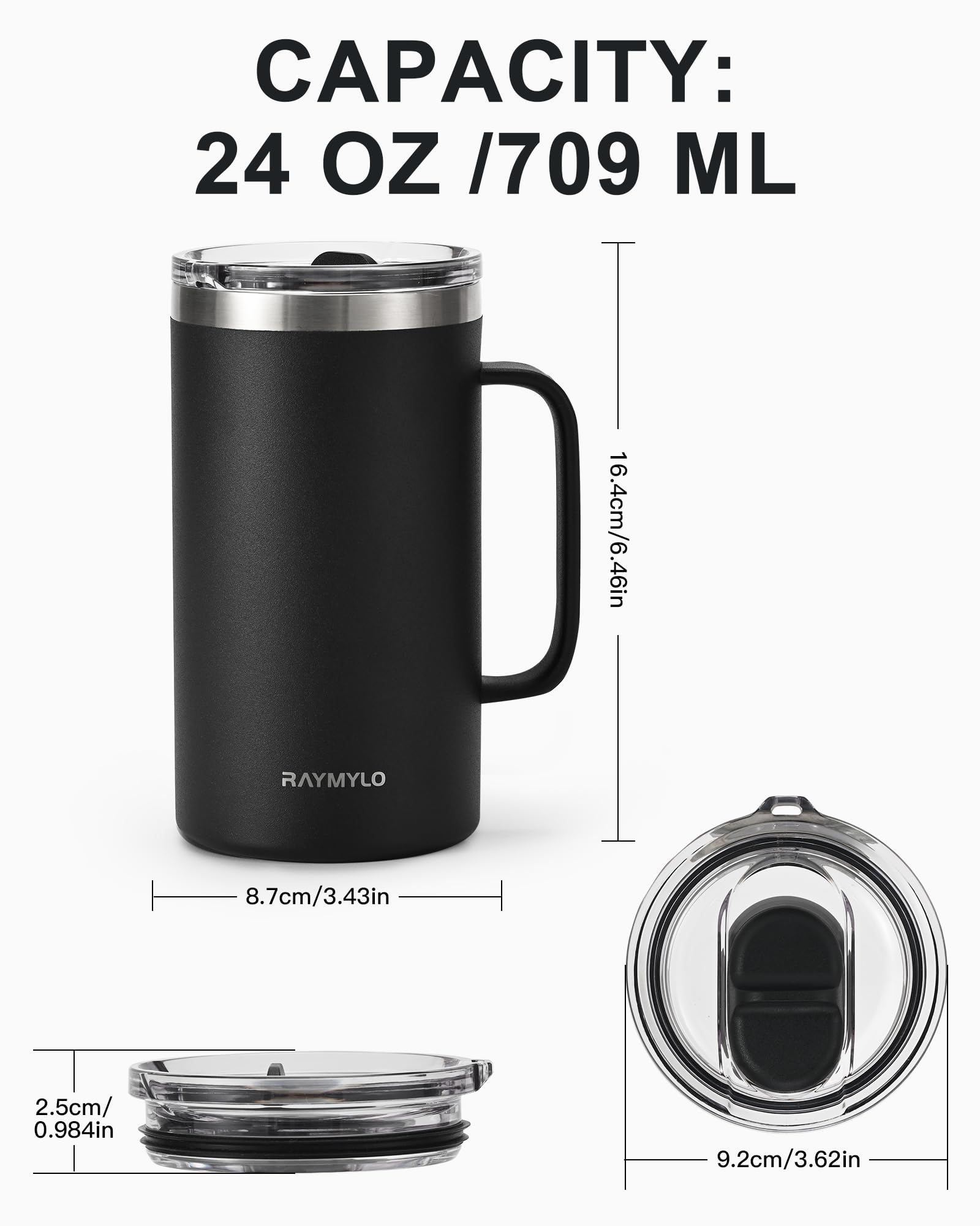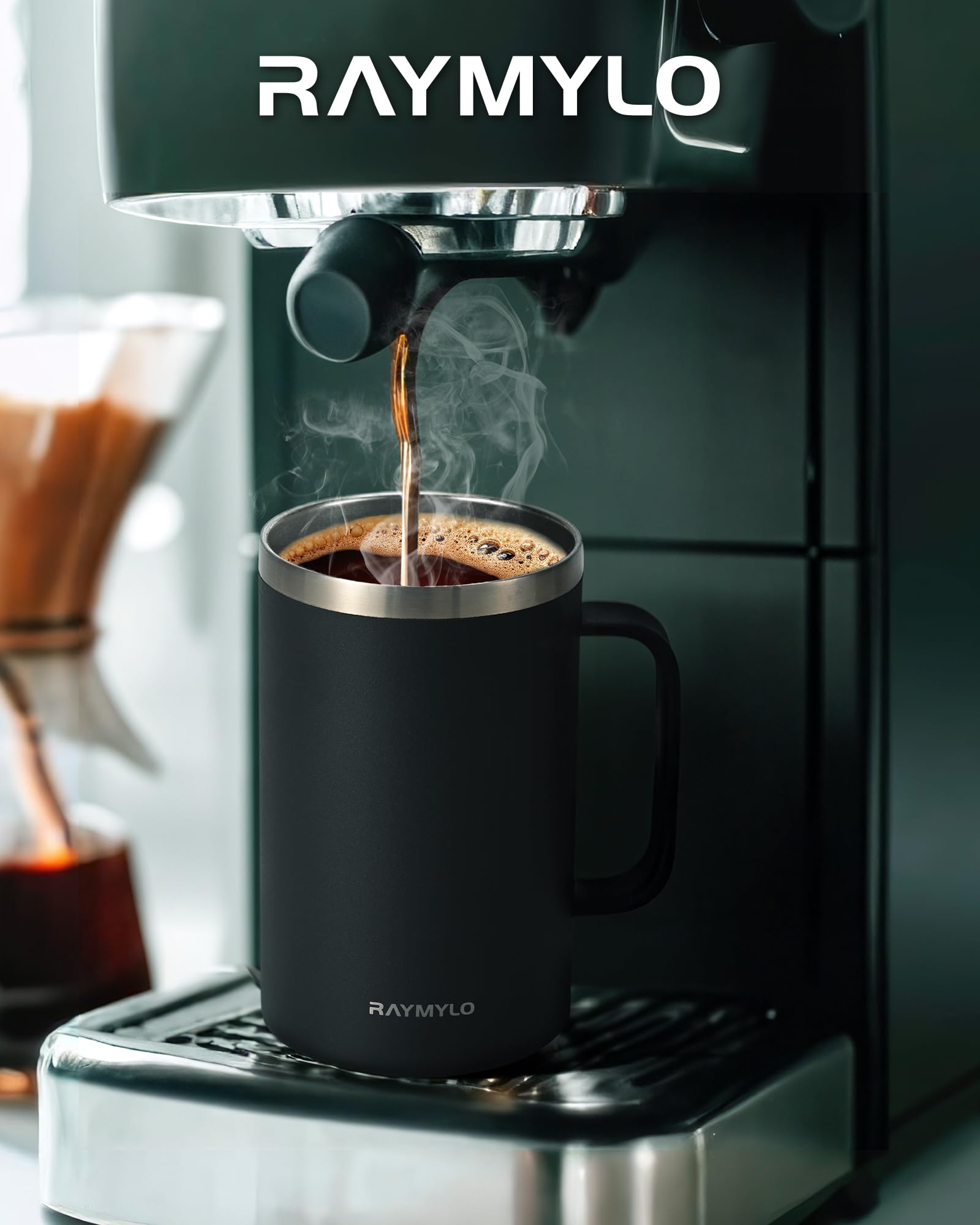 Double-Wall Vacuum Insulation: RAYMYLO Coffee Mug keep your drinks icy-cold for 9 hours and cozy hot for 3 hours with advanced Double-wall design! Perfect for hot summer days or long work hours, this insulated coffee mug with handle ensures your drink stays refreshingly cold or deliciously hot when you need it most.