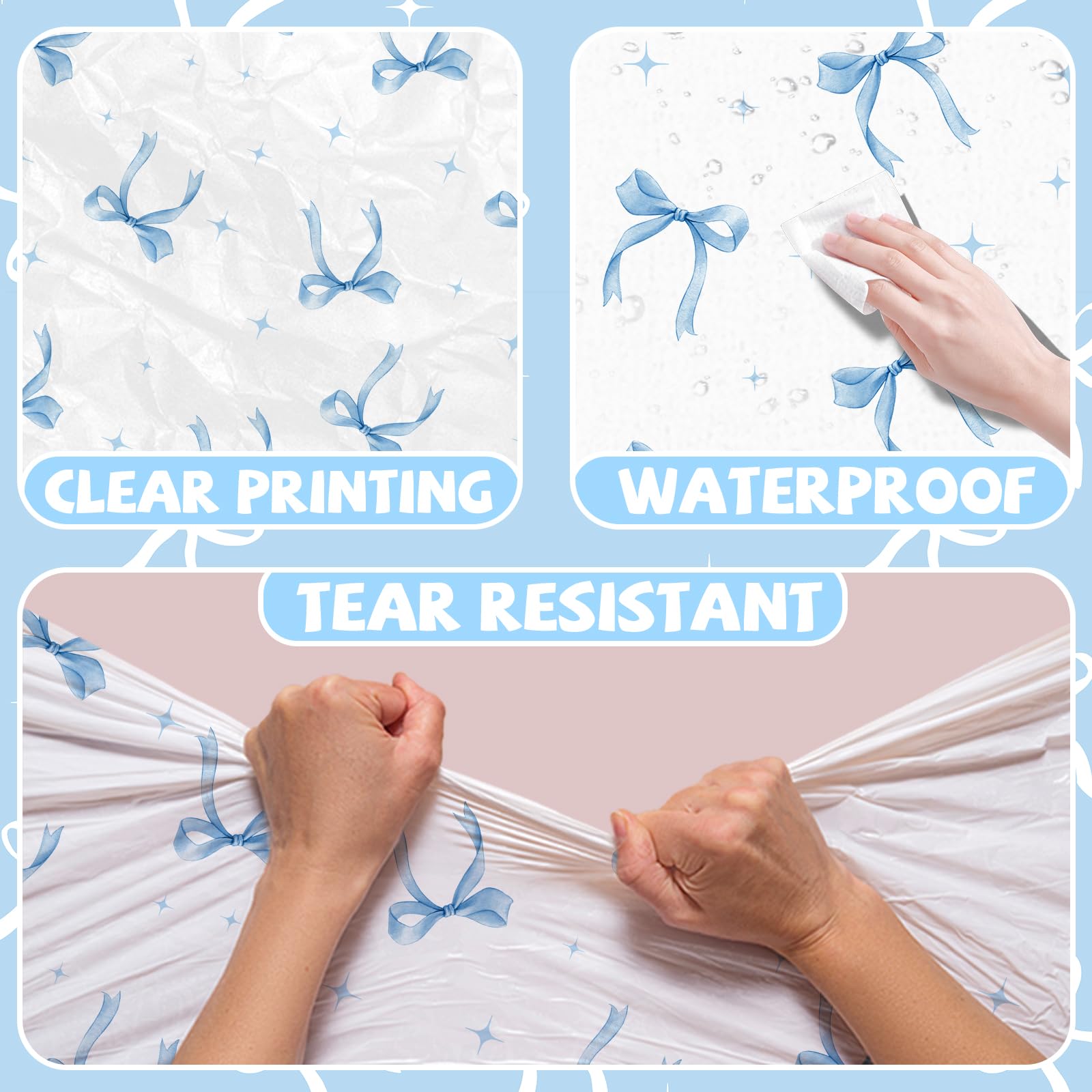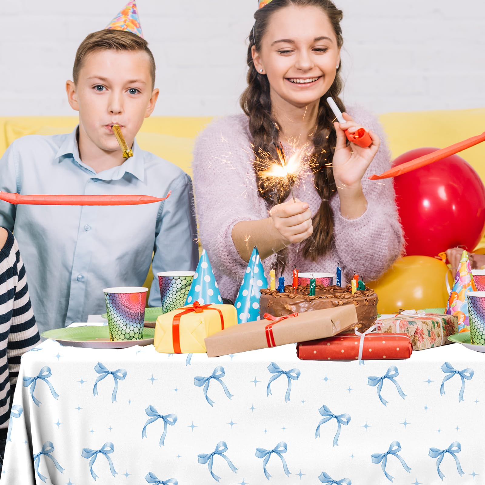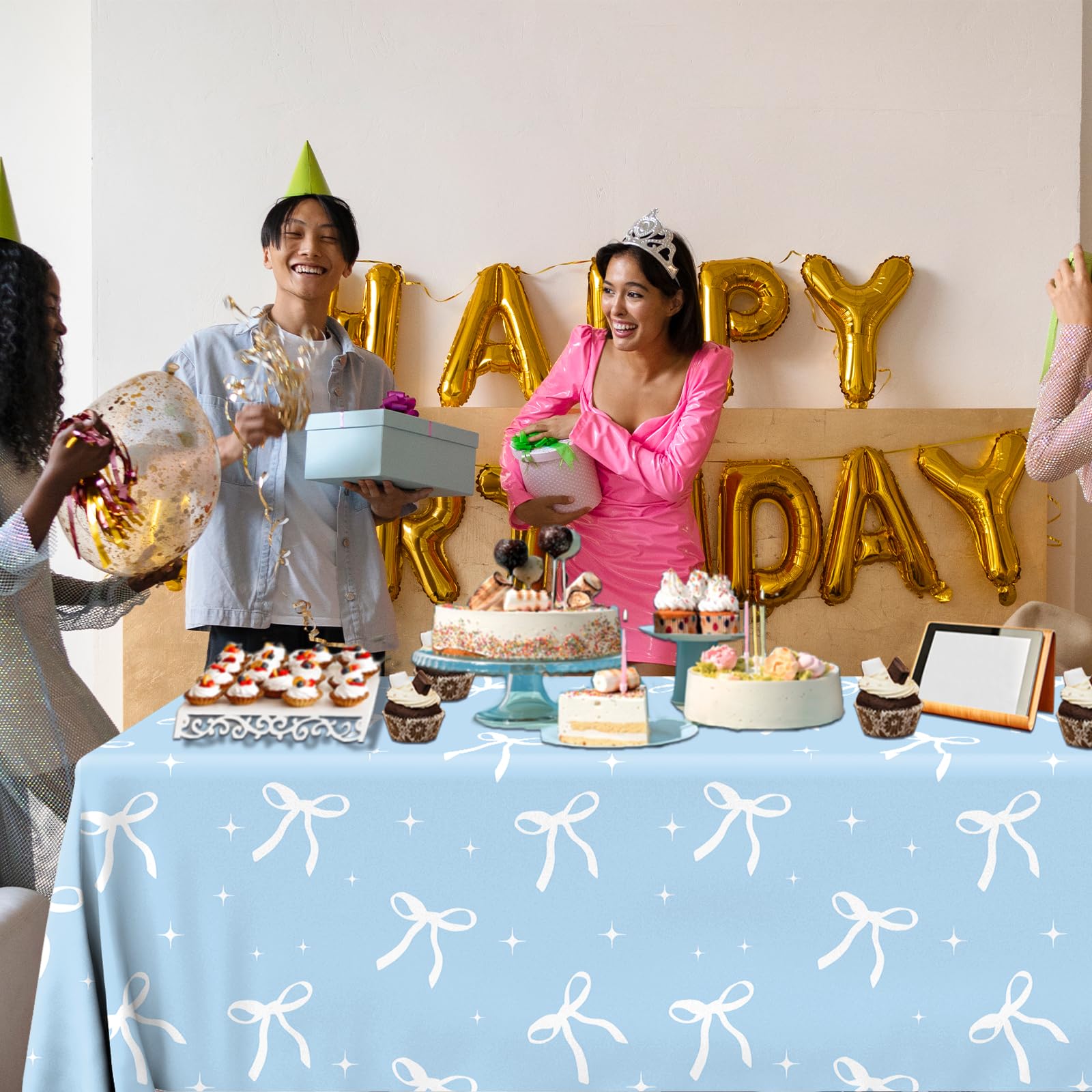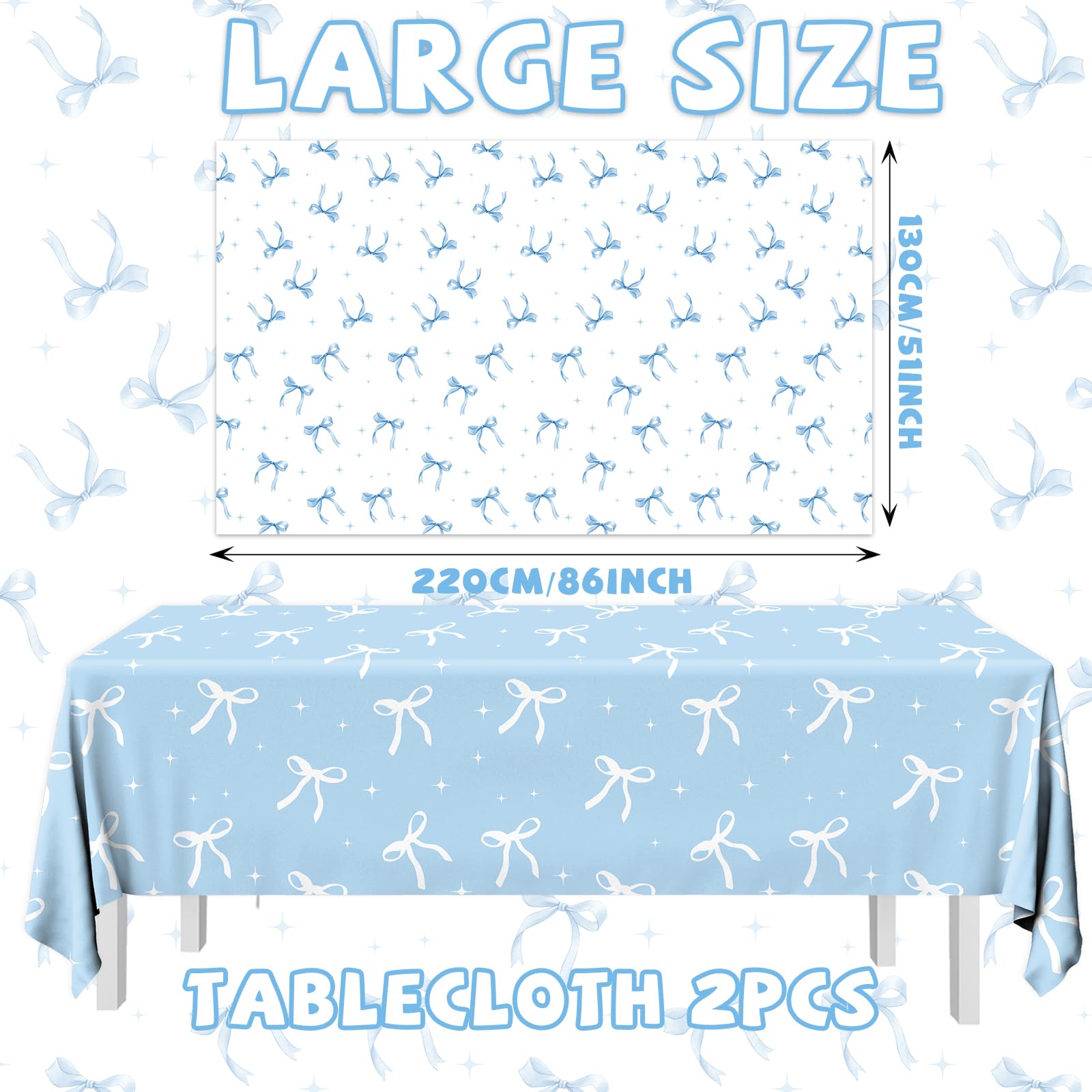 【Coquette Birthday Decorations】You will receive 2pcs blue and white bow party tablecloths, with a size 220×130cm/86×51inch, large enough to cover most rectangular tables. It is a great table decoration that can make your themed party more colorful!