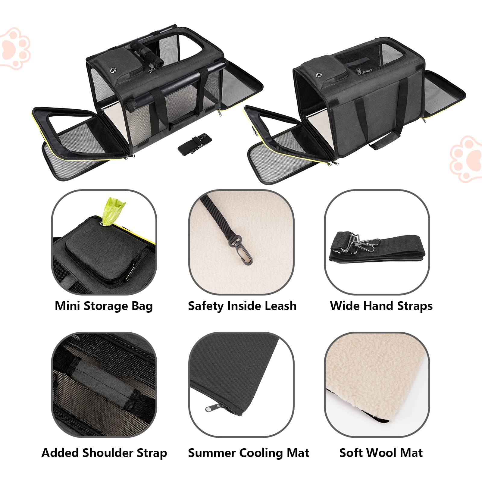 【Collapsible & Lightweight】The cat carrier can be folded into a pad to save your storage space and is easy to take out. Top and side entry.
