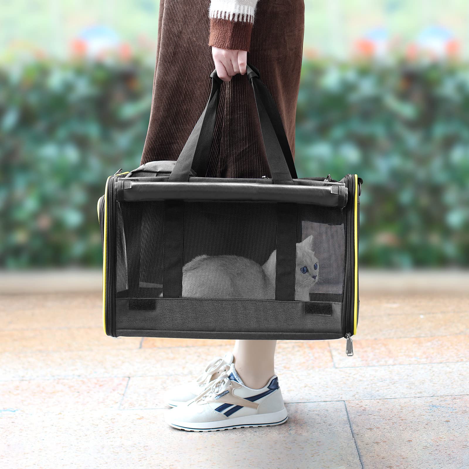 【Breathable and Private】GAPZER large cat carrier designed mesh all around to ensure normal circulation of air inside the box and easy for you to check on your pet. These roller blinds can be put down if your pet feels nervous.
