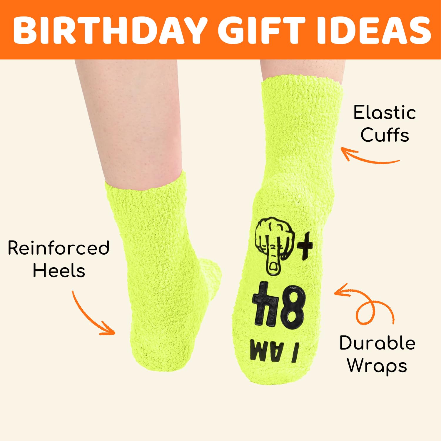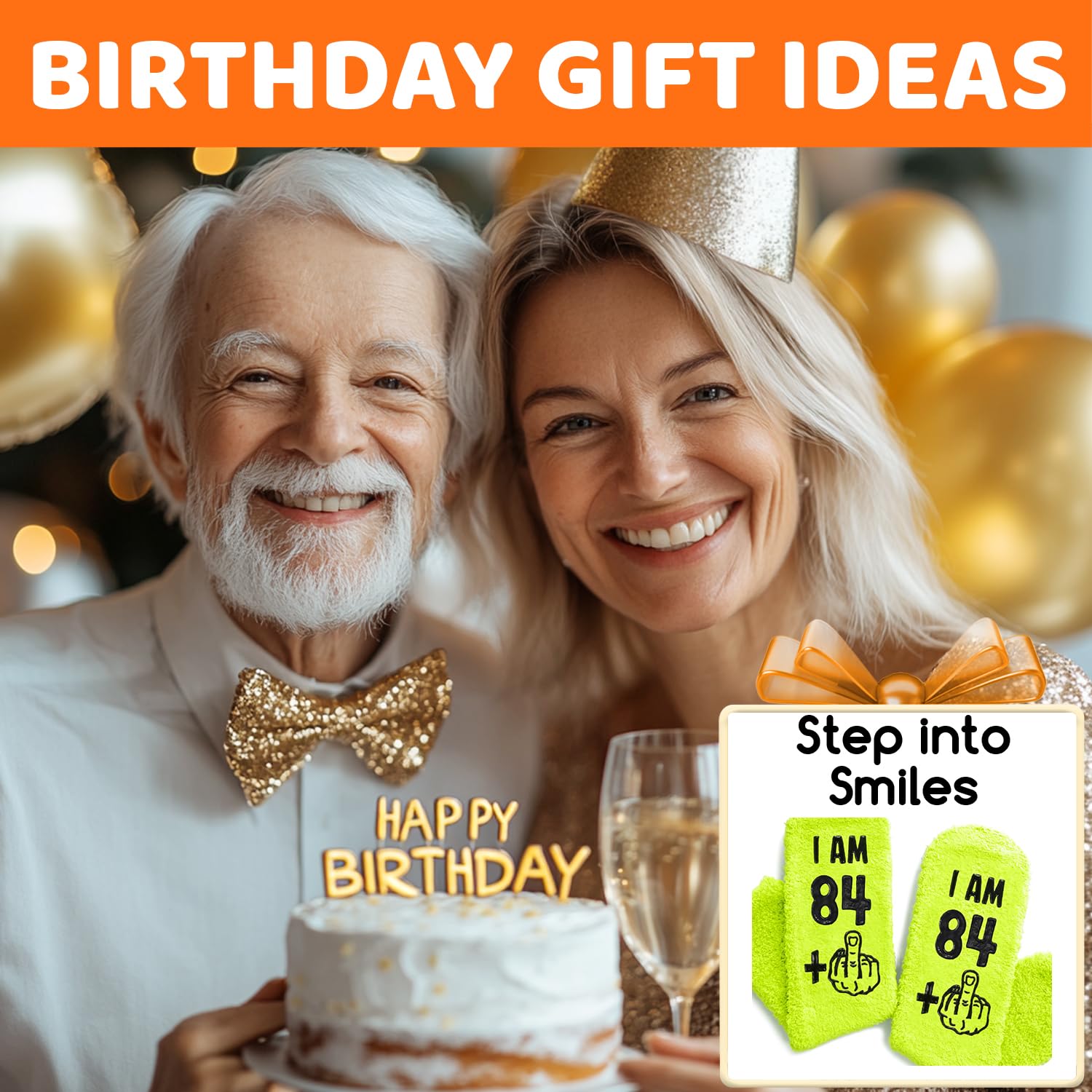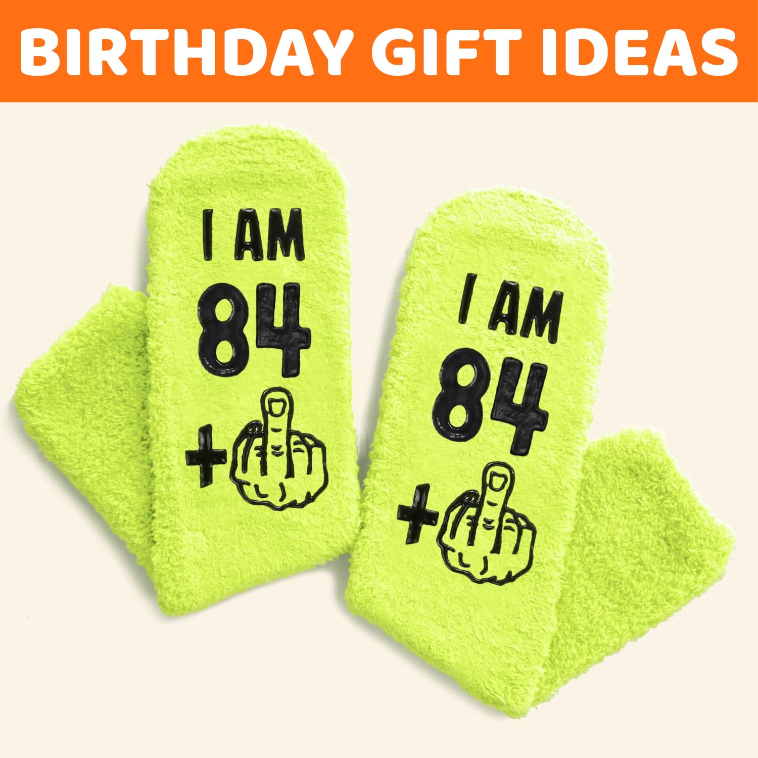 85TH BIRTHDAY GIFT IDEAS: Say it with socks - "I AM 84+1." These are suitable for any holiday gifts, such as Birthday gifts, Christmas gifts, or White Elephant gifts.