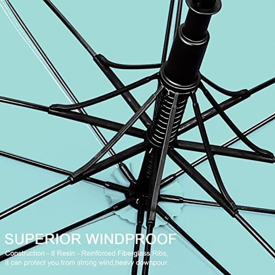 Strong Windproof. Reinforced durable fiberglass frame, 8 ribs construction, and double-canopy venting system for the wind to pass out, which prevents this sturdy umbrella from inverting during high winds; This windproof umbrella is built to protect from sun, rain, hail, snow, and sleet.