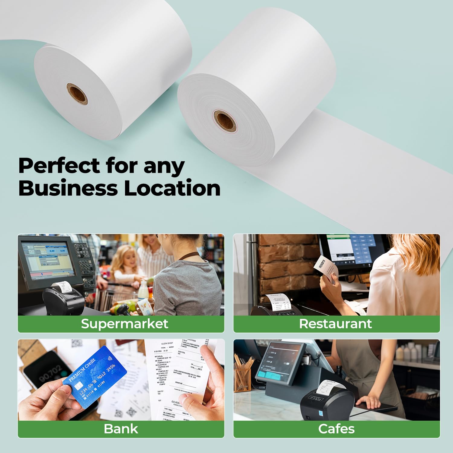[Reliable Quality] Thermal paper with advanced quality control will print clean, crisp black-and-white text for you. Receipt paper with durable thermal roller prints smoothly without jamming when using the receipt printer. A good user experience, you deserve it