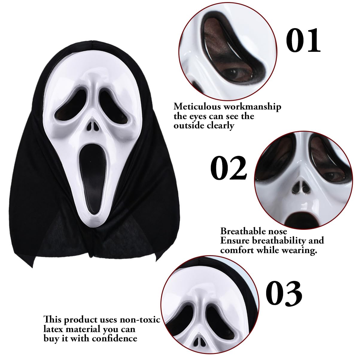 Description Main Material: Latex+Cloth Mask Size: About 13 ‘’ * 8 ‘’ (L*W) High Quality Material: 3D skull mask is made of plastic and cloth, light in weight, suitable for most teenagers and adultsThis skeleton costume is special for Halloween. With the skeleton mask and pattern, the cloth looks more scary. It will give you a unforgettable Halloween Package Include: 1* Halloween 3D Skeleton Mask Features: The skeleton mask and pattern of the cloth look more horrible. Great Halloween decoration, best Halloween party choice. Bring your favorite horror look to life with this Scary GhostFace 3D Scream Mask. Recognized by horror fans worldwide, the iconic scream design instantly sets the tone for a frightening Halloween appearance. The 3D sculpting adds depth and realism, with dramatic contours and shading that enhance the mask’s creepy effect. Made from flexible latex, it fits most adult head sizes comfortably while remaining breathable. Whether you’re dressing up for Halloween, performing in a haunted house, cosplaying a horror character, or filming scary videos, this mask offers versatility and durability. Built for repeated use, it can be stored safely and reused for multiple Halloween seasons. Perfect as both a horror costume accessory and a creepy decoration, this mask will guarantee all eyes—and screams—are on you.