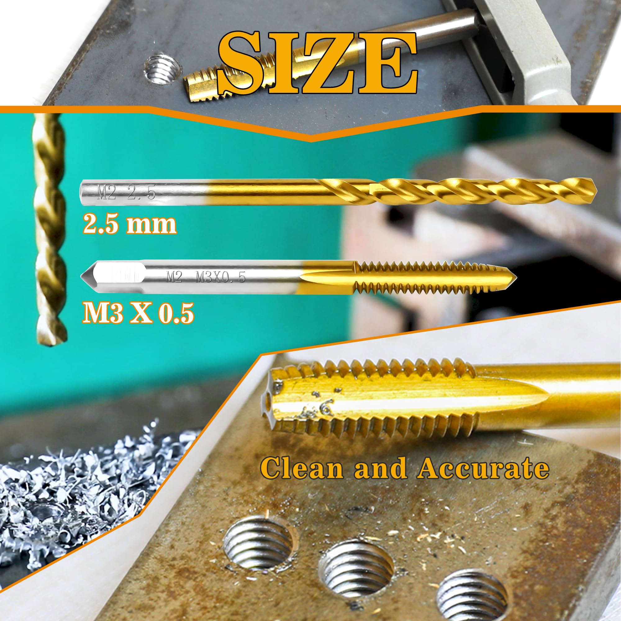 【Top Quality】All the taps and drill bits in our tap tool sets are made of top-grade M2 steel and are titanium-plated to ensure its high hardness, rust proof, sturdy and durable.Fits most drill driver brands on the market. The taps in this set can be driven by hand and machine.