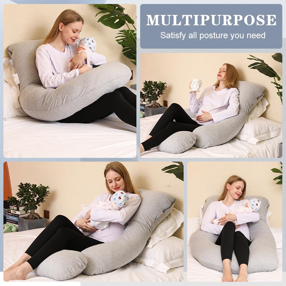COMFORT U SHAPED PREGNANCY PILLOW -- The u-shaped pillow for pregnant women is long enough to stretch and support the body as a pregnancy pillow for sleeping. The inner curves of u pillows for sleeping full body contours like pregnant body pillows for sleeping can align hips for neutral joint positioning. That is the feature of u shape body pillow to reach stage that is a better pregnancy sleep pillow that pregnancy must haves.