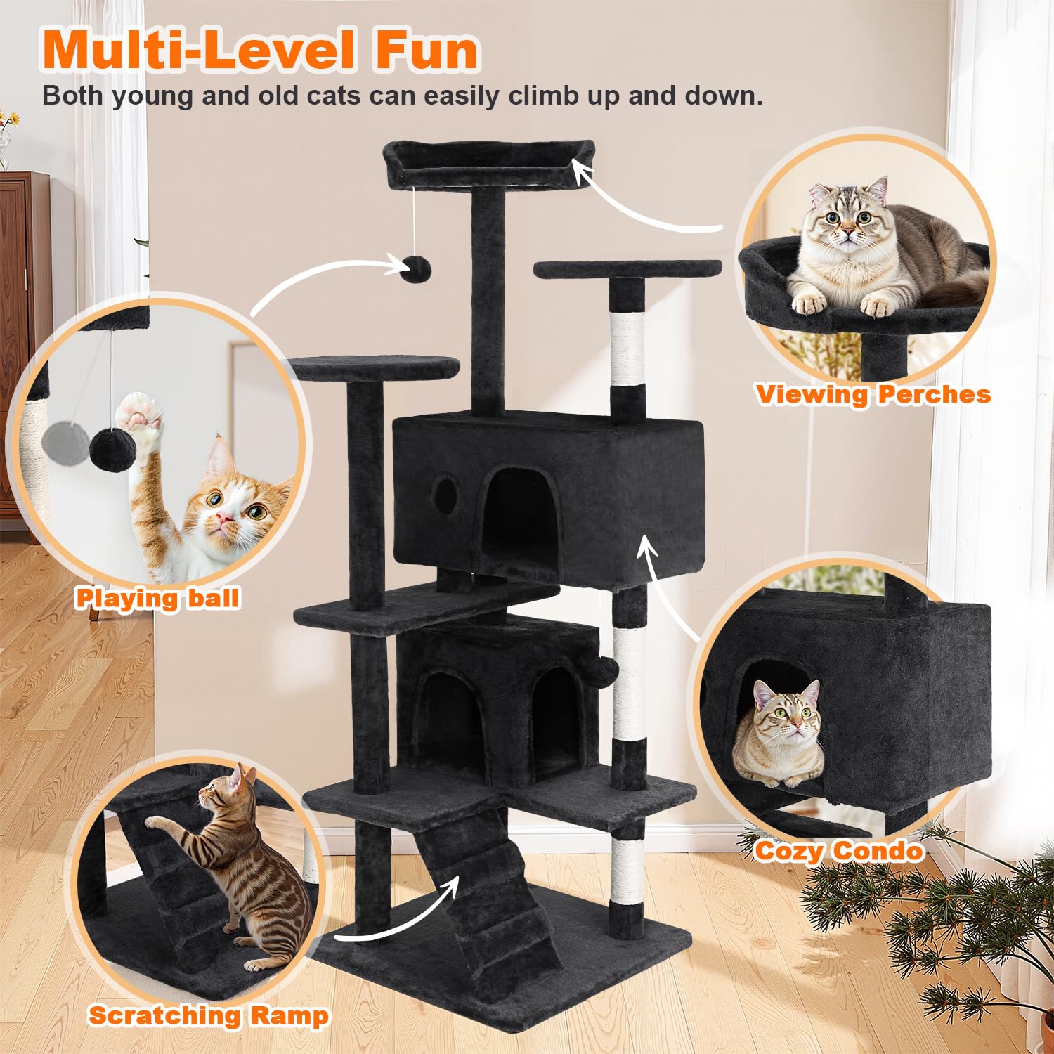 🐱 【Simple assembly】We understand that convenience is important to pet owners, which is why we made our cat tree simple to assemble in a matter of minutes. You can quickly provide your kitties a stimulating environment by following the simple setup instructions and using the available tools. Please feel free to contact us with any questions you may have about our cat tree, and we will respond to you within a day!