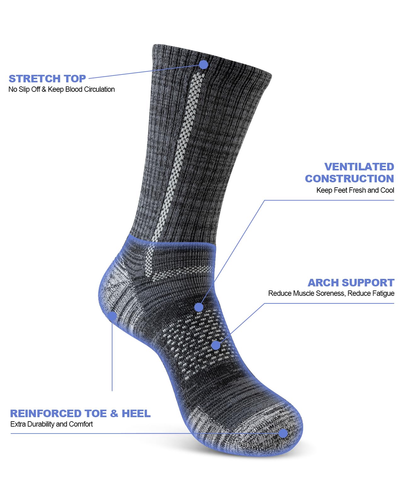 MOISTURE WICKING CONTROL: Made with superior cotton and unique knitting techniques, our walking socks effectively manage sweat to keep your feet dry. Suitable for multiple occasions, they excel in breathability whether you’re hiking, running, or engaged in any sport