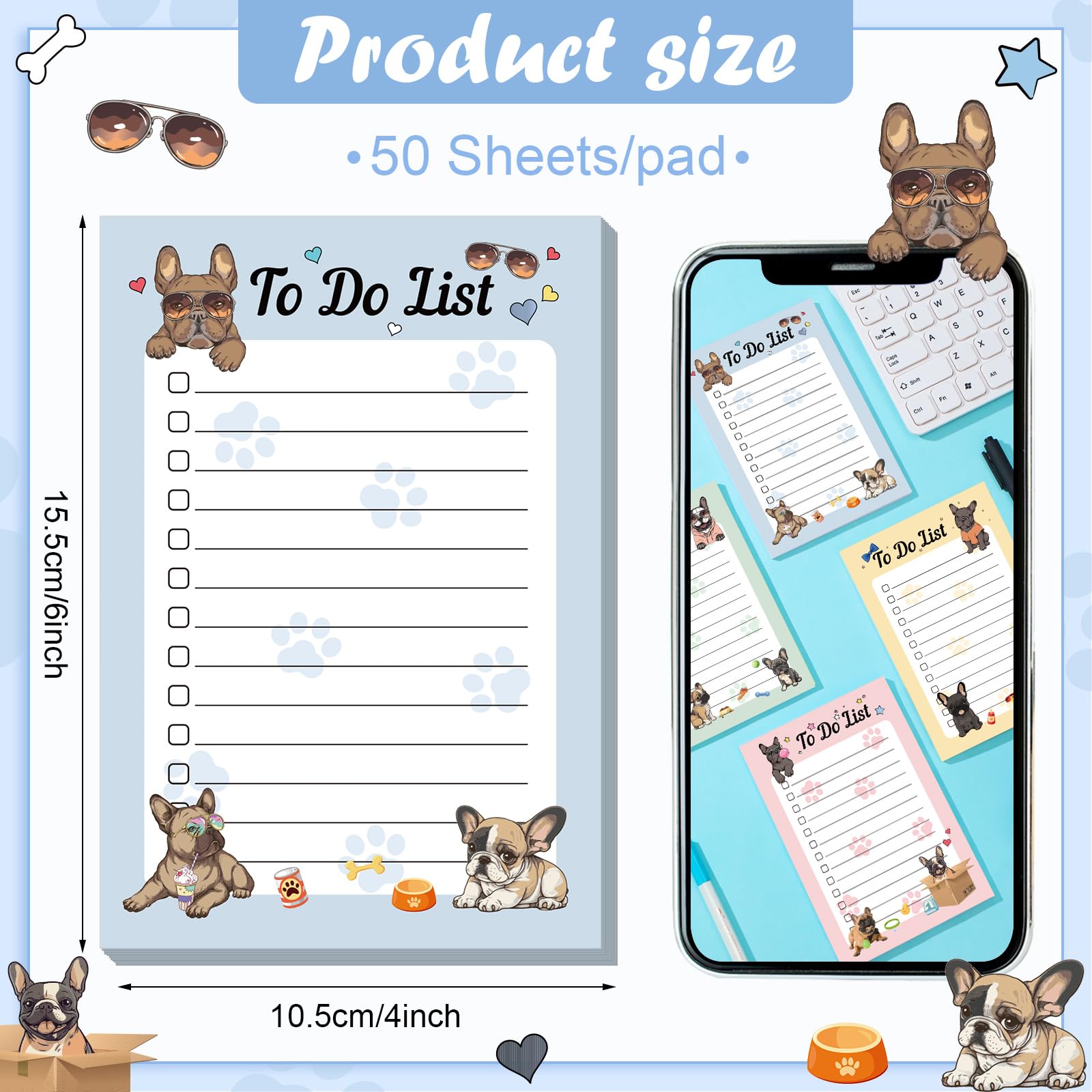 Features: Nice and warm choice: The funny dog to do list sticky notes are pretty and useful, you can send them to your family and friends on birthdays, Christmas, Thanksgiving and other holidays, helping them to organize the messages. Portable and lightweight: The sticky notes with lines measure about 10.5 x 15.5 cm/ 4 x 6 inches, suitable for you to write the information. Meanwhile, these dog sticky notes are portable and lightweight, easy to fit in your bags, purses, or pockets, convenient to use. Specifications: Material: paper Color: as shown in the picture Size: 10.5 x 15.5 cm/ 4 x 6 inches Package includes: 4 Pads of funny dog to do sticky notes Notes: Manual measurement, please allow slight errors on size. The color may exist a slight difference due to different screen displays.