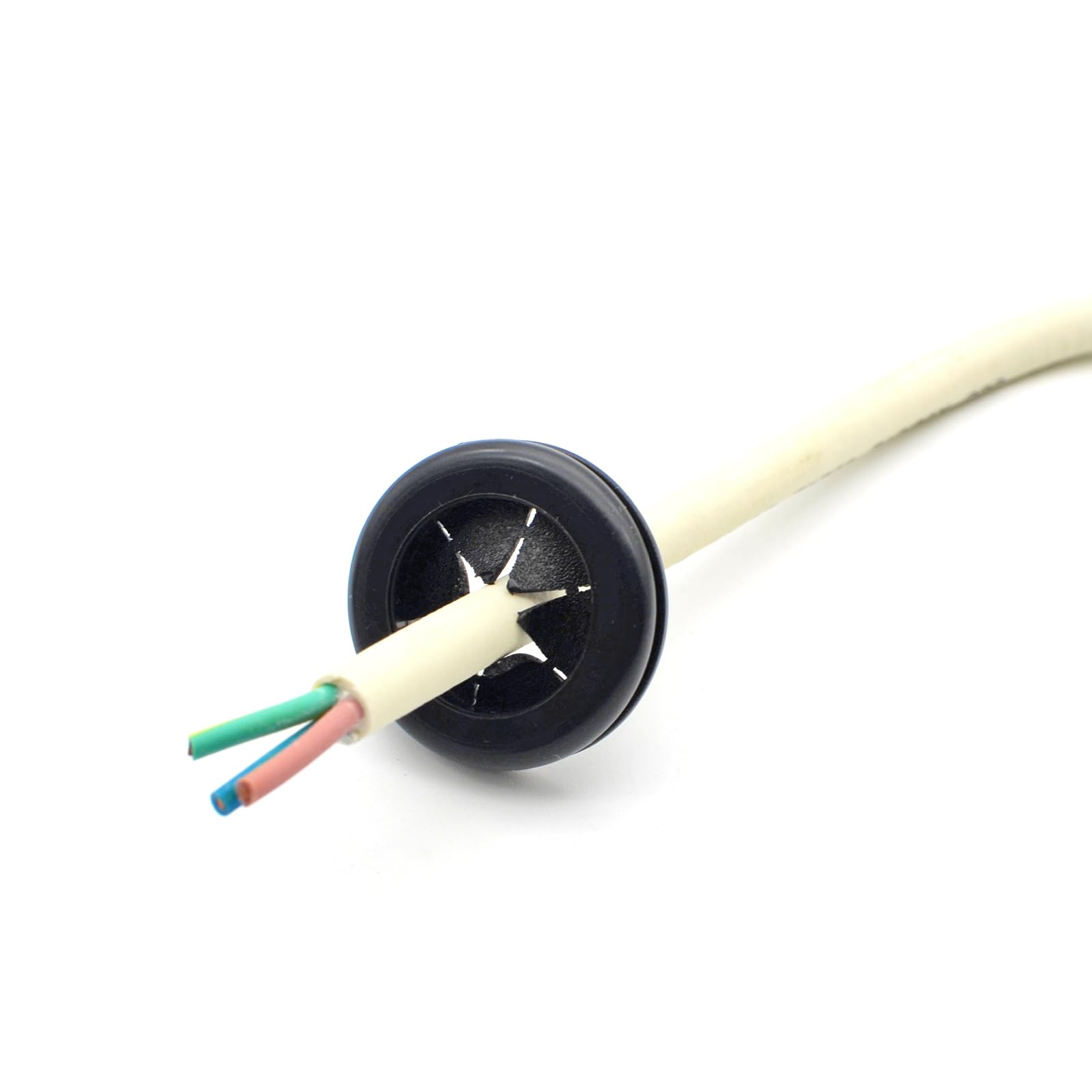 Easy to install, just push the rubber grommet into the cutout hole by hand. No cutting and no tools required!